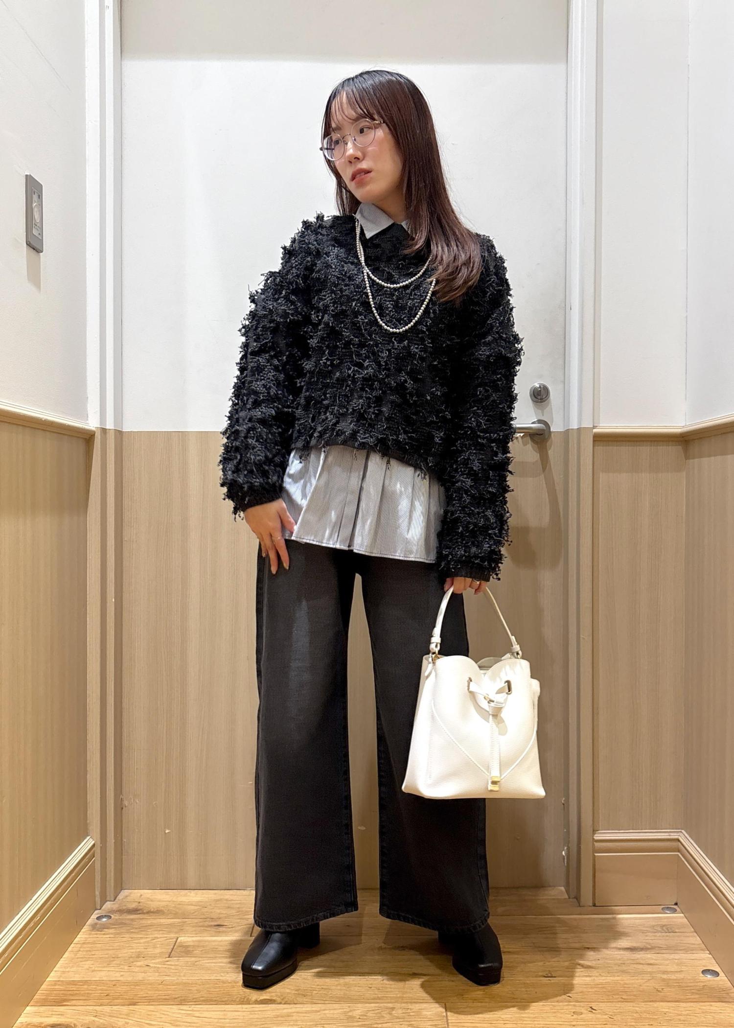 身幅にはゆとりがあるので、他の薄手ニットなどインナーをレイヤードしても嵩張りません。 -