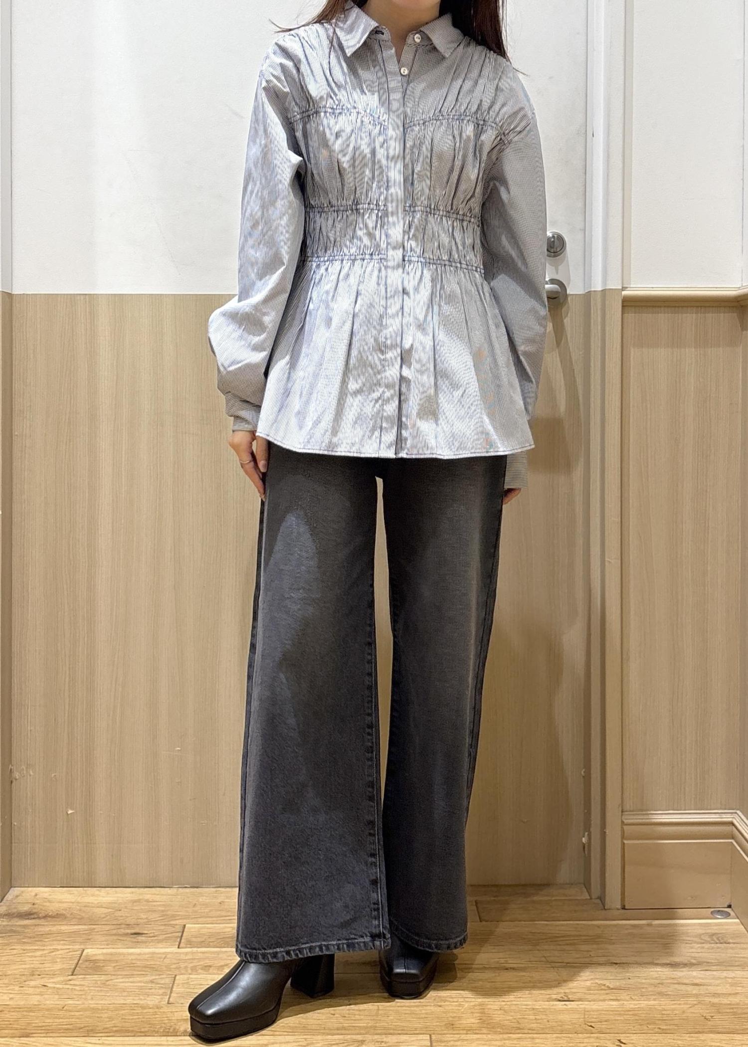 VISシャーリングデザインシャツネイビー系 / F¥5,489レビューシャーリングデザインがウエストをきゅっと見せてくれるので、ワイドパンツ合わせでも重たく見えません◎