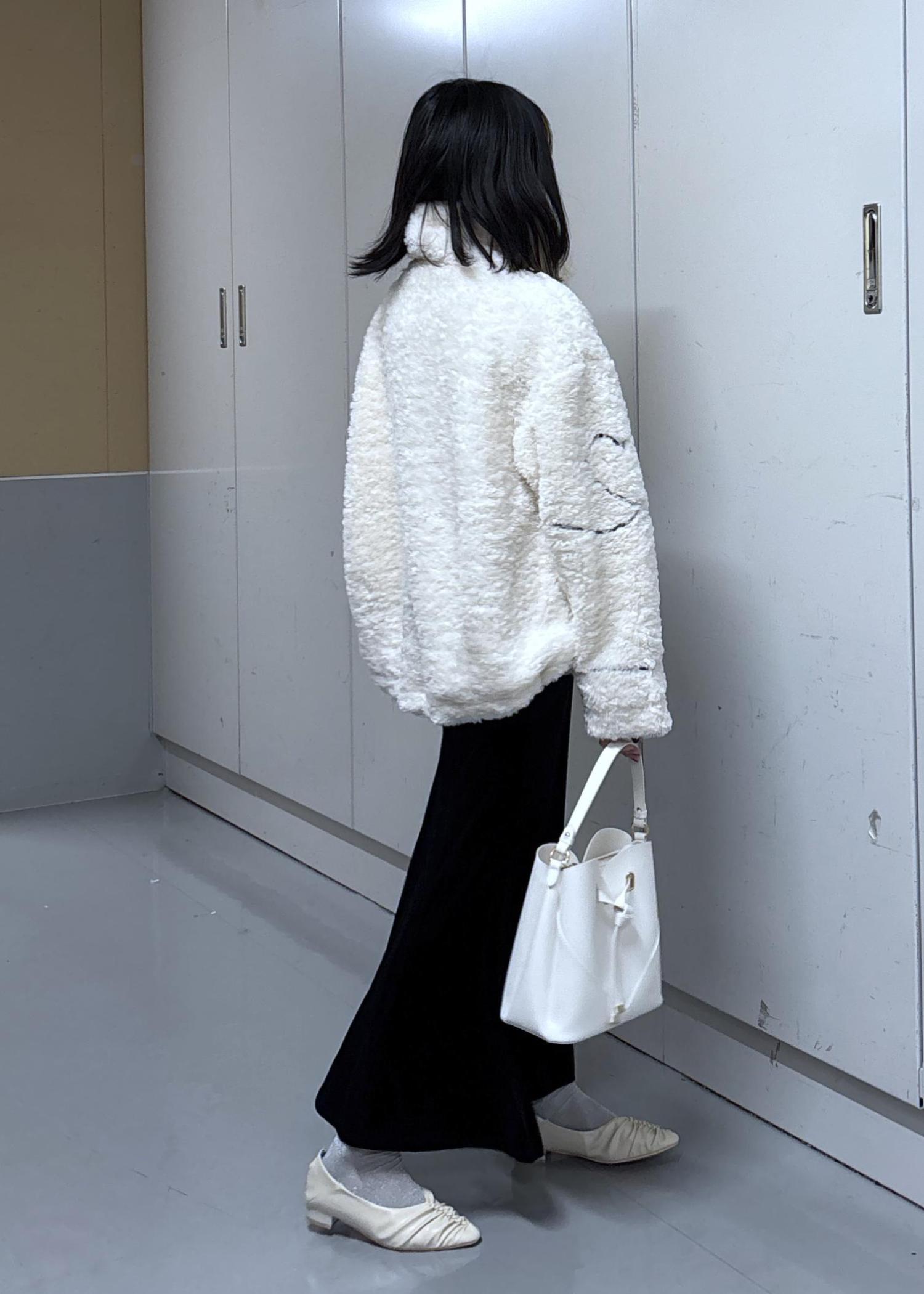 裾が絞れるので、低身長の方は絞ってまるっとしたシルエットで着るのもオススメです。 -