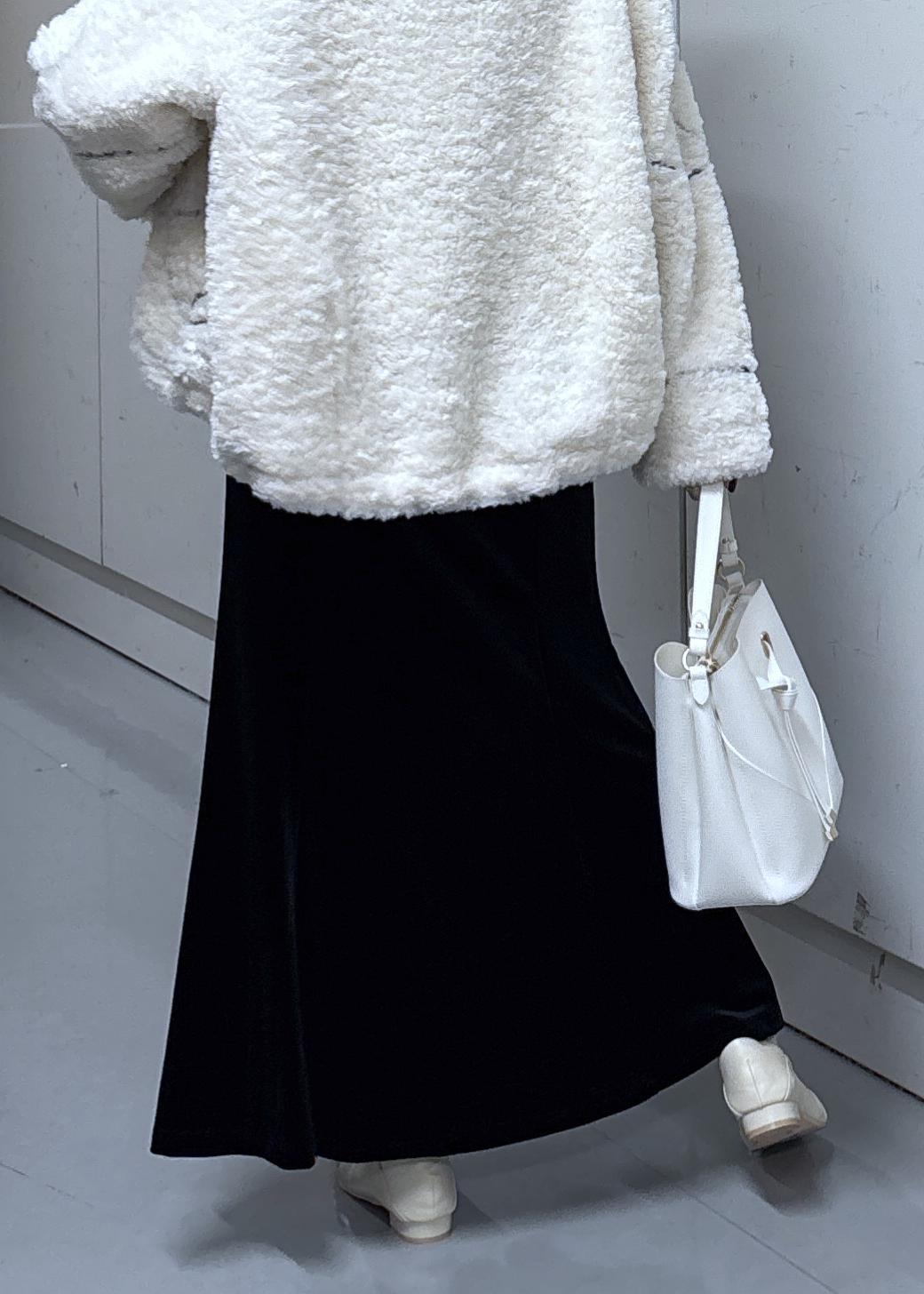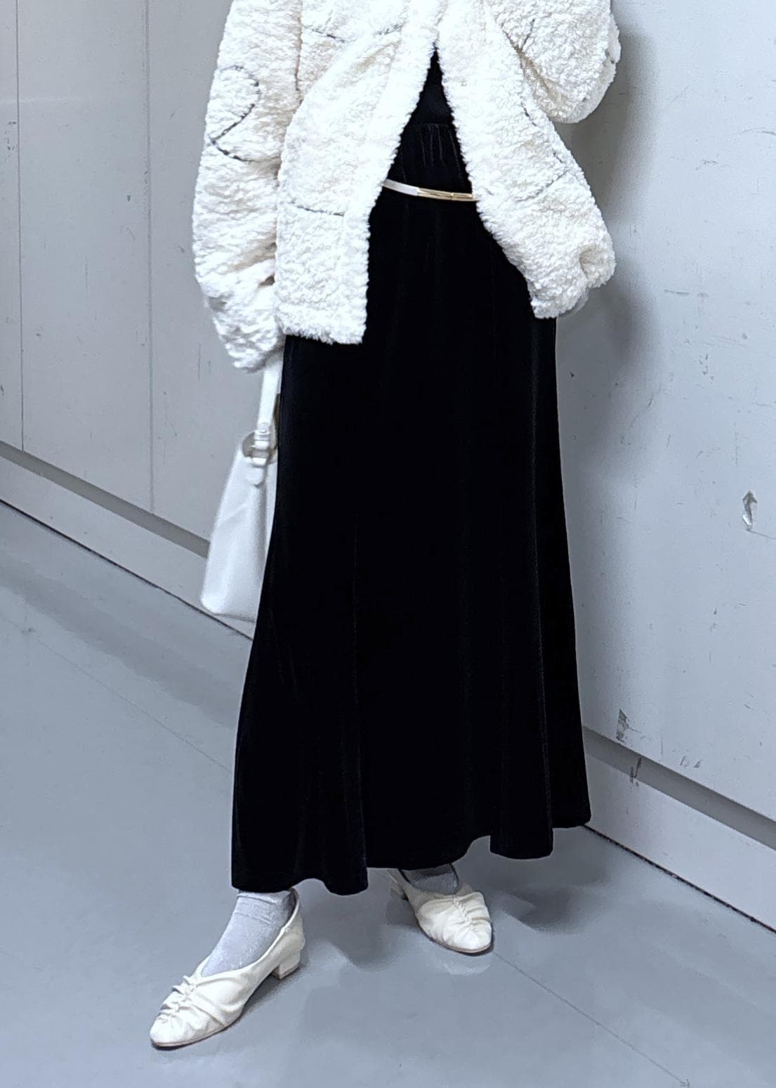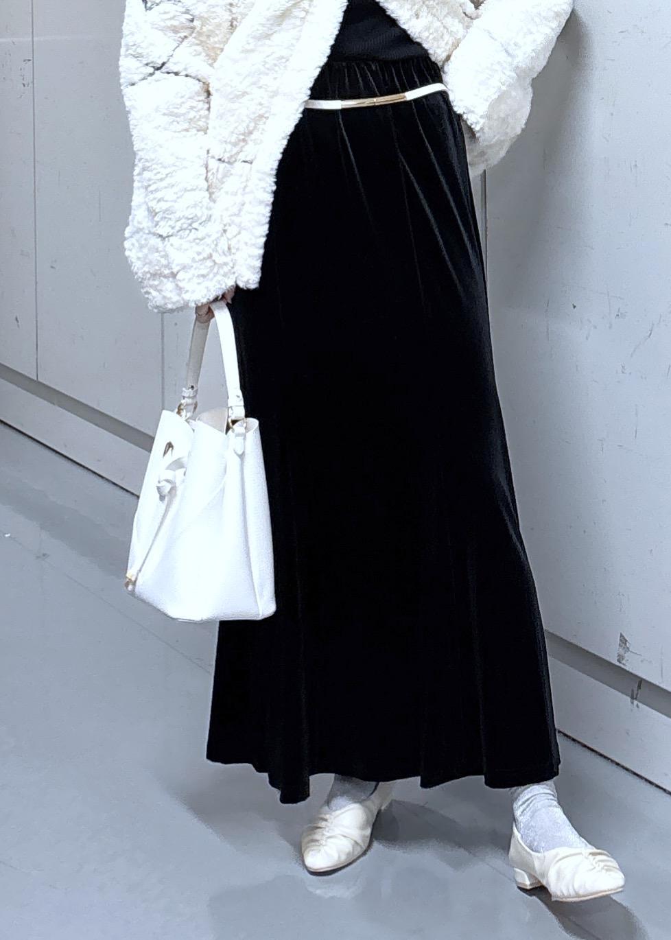 VISベロアナロースカートブラック / S¥6,589レビュー少し長めの丈ですが、折り返して着たい着丈にできるウエストゴムなので低身長の方にもオススメ!