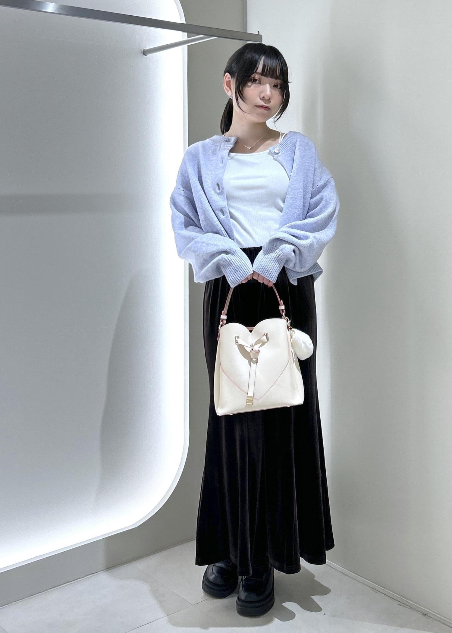 VISハートアソートパール釦ラメミックスカーディガン/イージーケア・一部WEB限定カラーパープル系 / F¥5,489レビュー短めの着丈でアウターの裾からはみ出さないのが嬉しい♡
