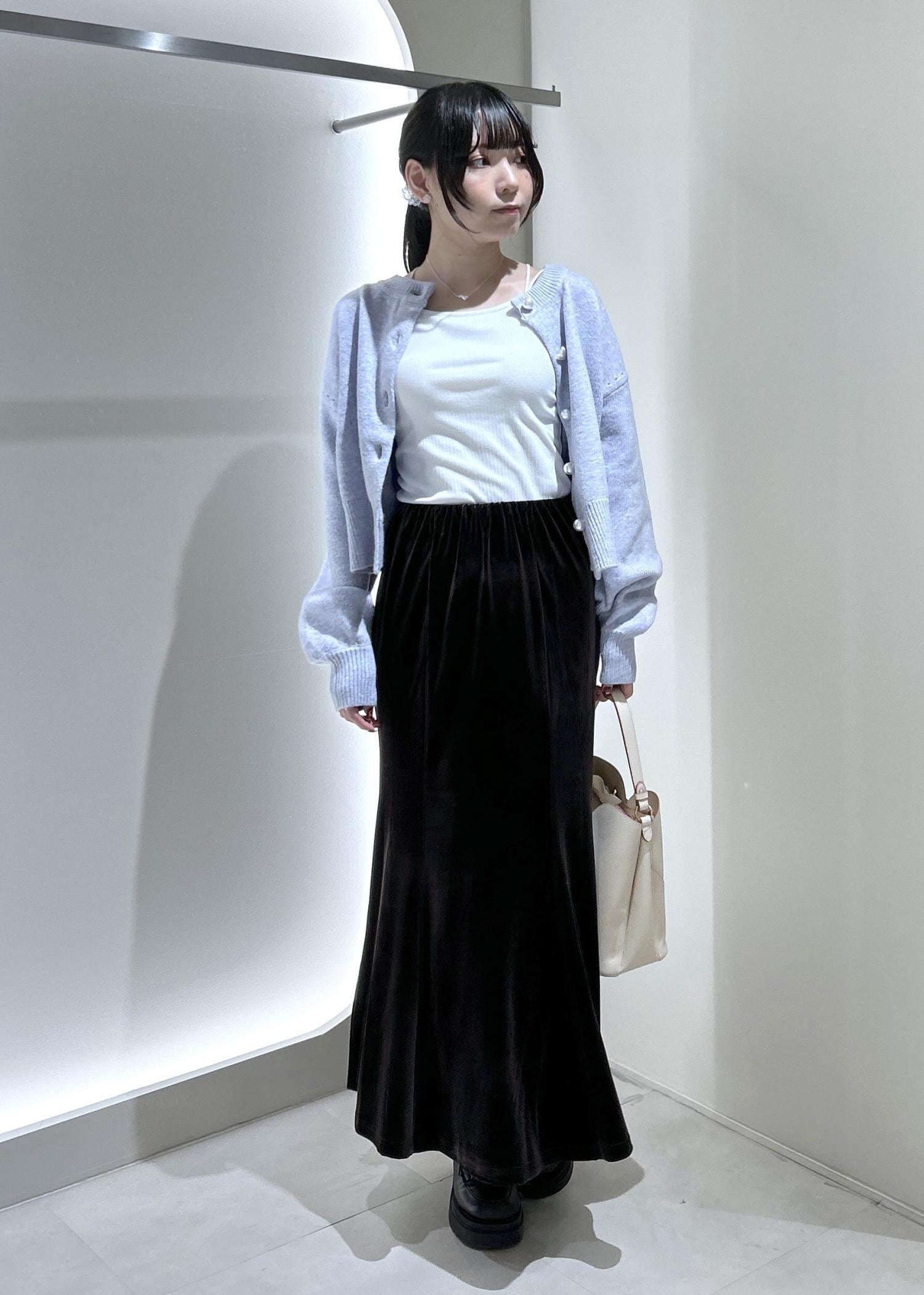 VISベロアナロースカートダークブラウン / S¥6,589レビュー身長157センチSサイズ着用でくるぶしくらいの丈でした。