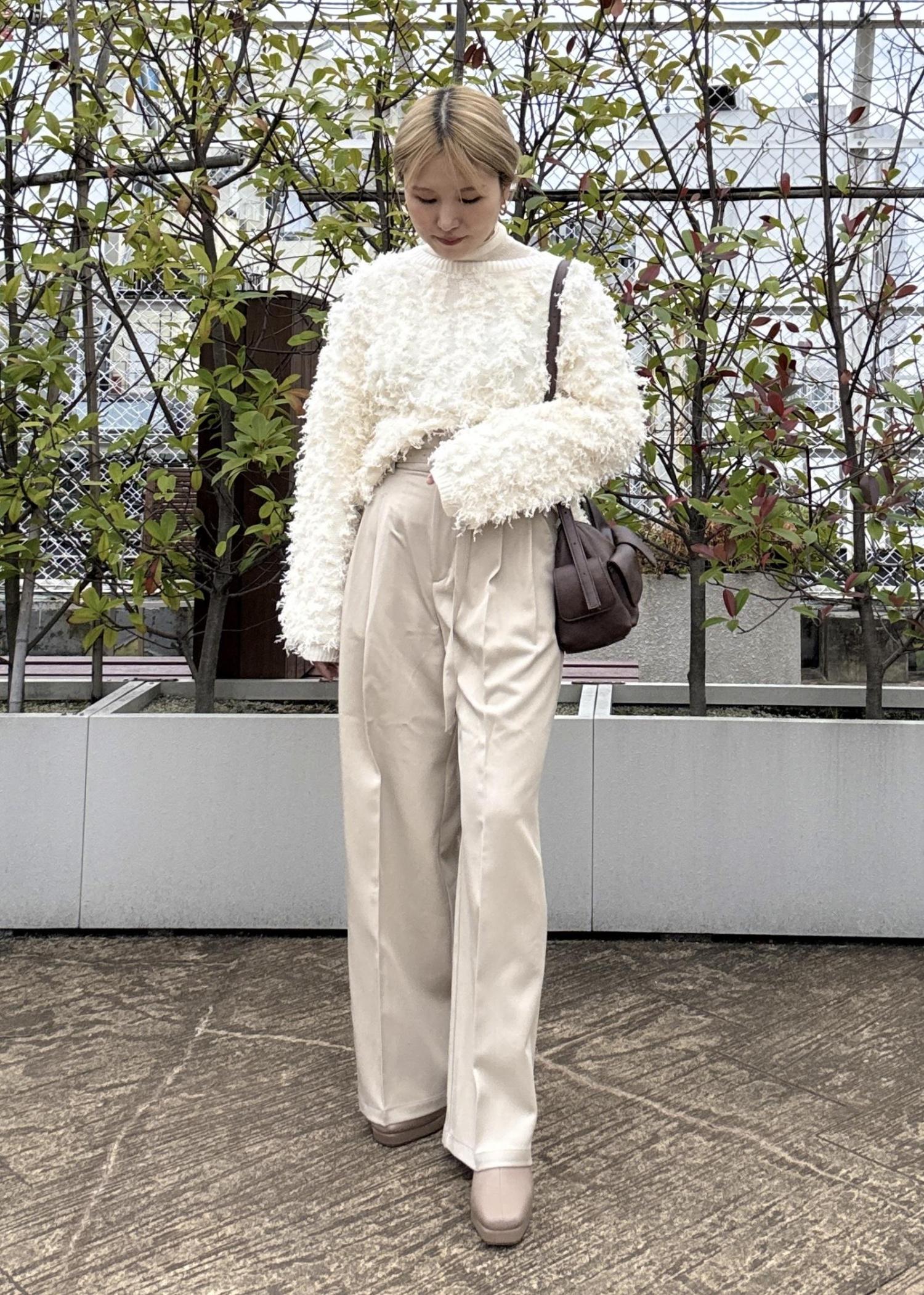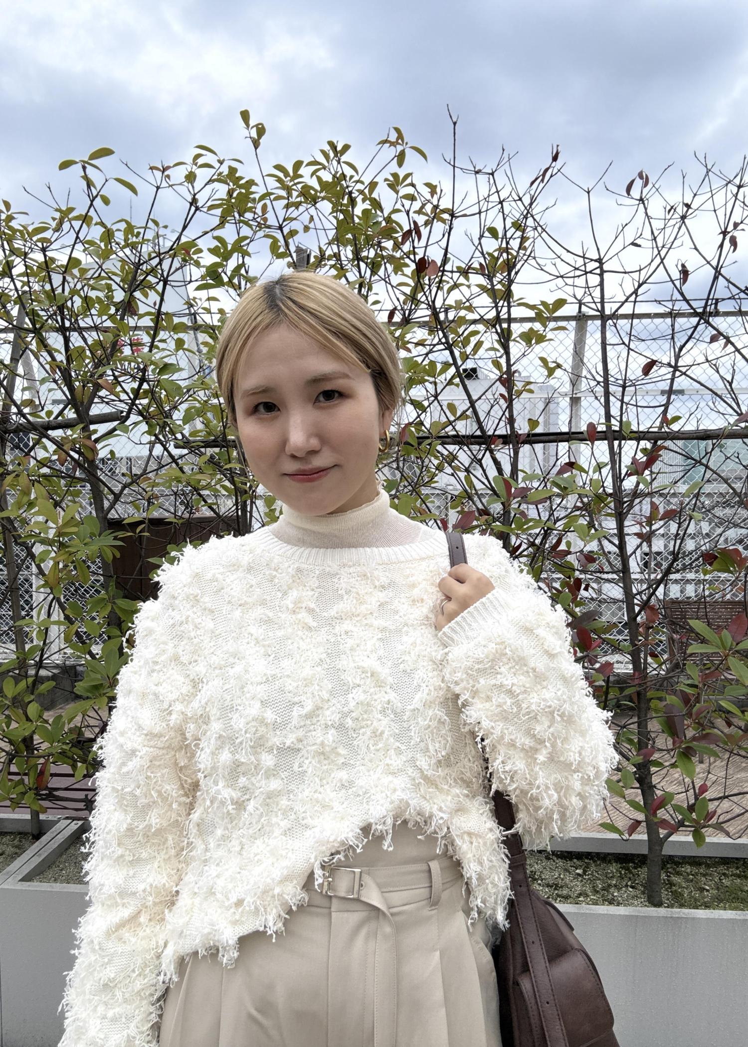 VISリボンヤーンフリンジニットプルオーバーオフホワイト / F¥6,589レビューぱっと目を引くフリンジニットは短丈のデザインなのでアウトスタイルでも低身長の方もバランス良く着れます。