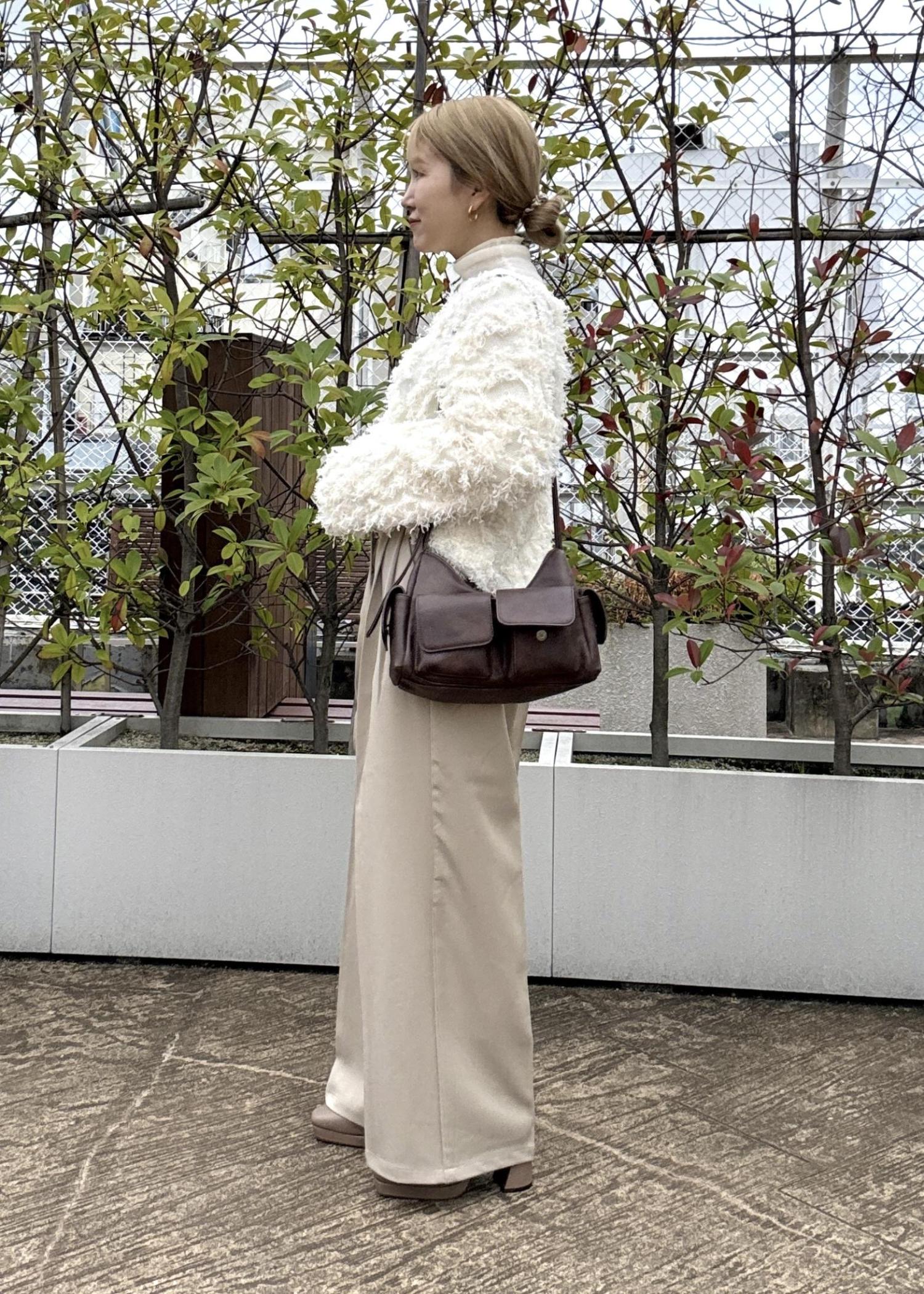 バッグはトレンドのブラウンを合わせて締め色にしました。