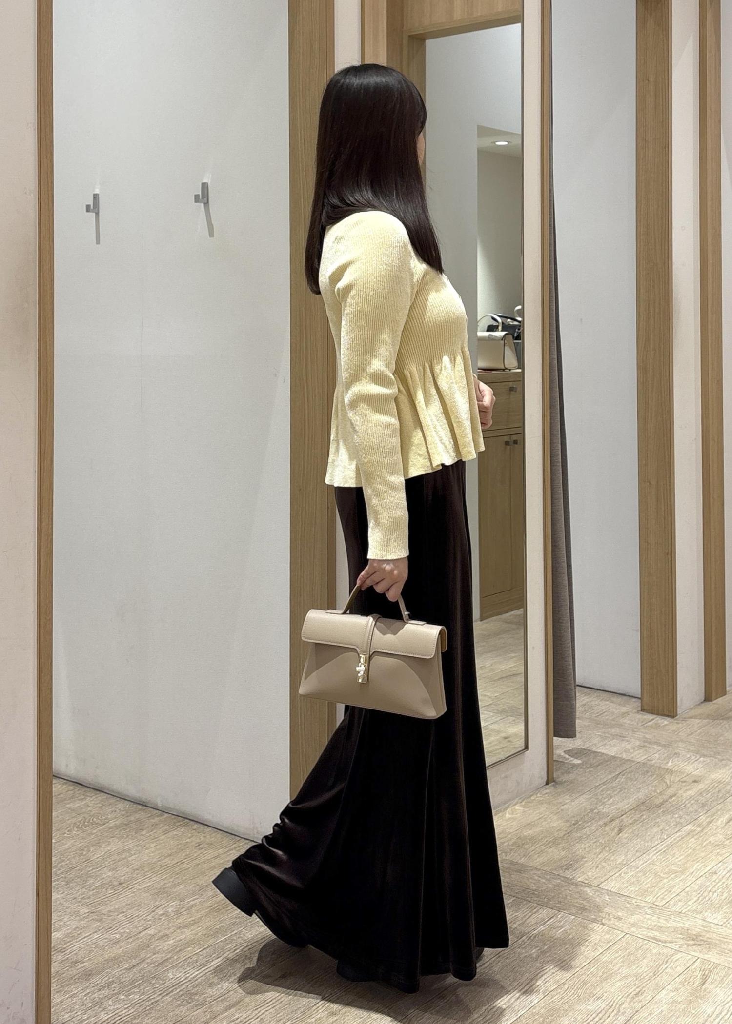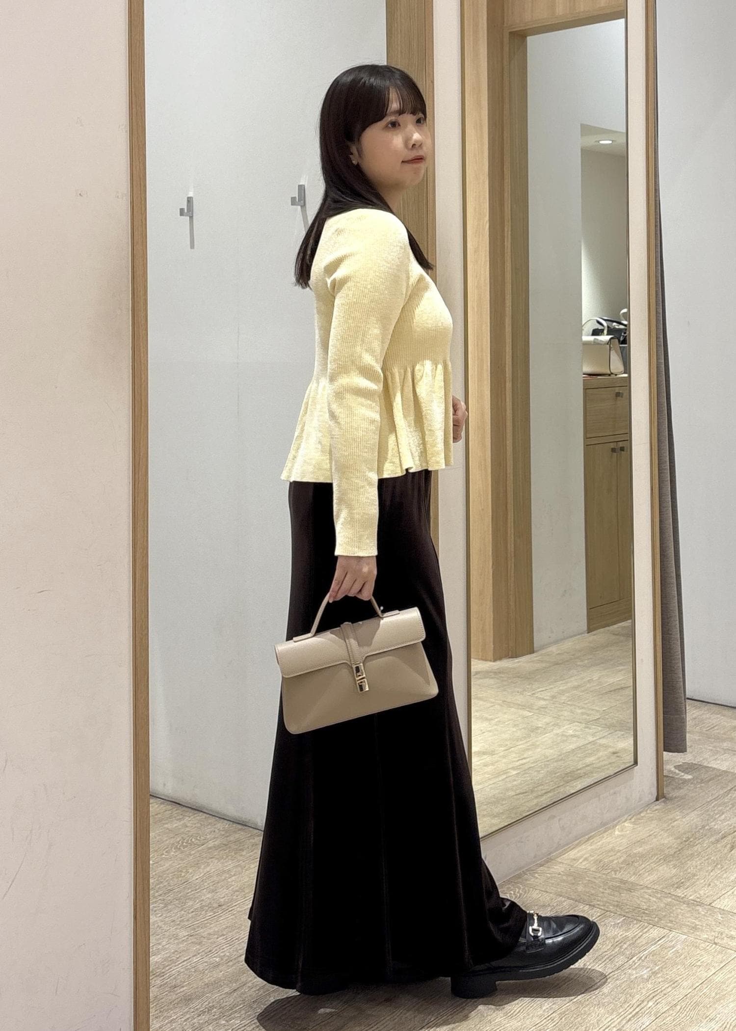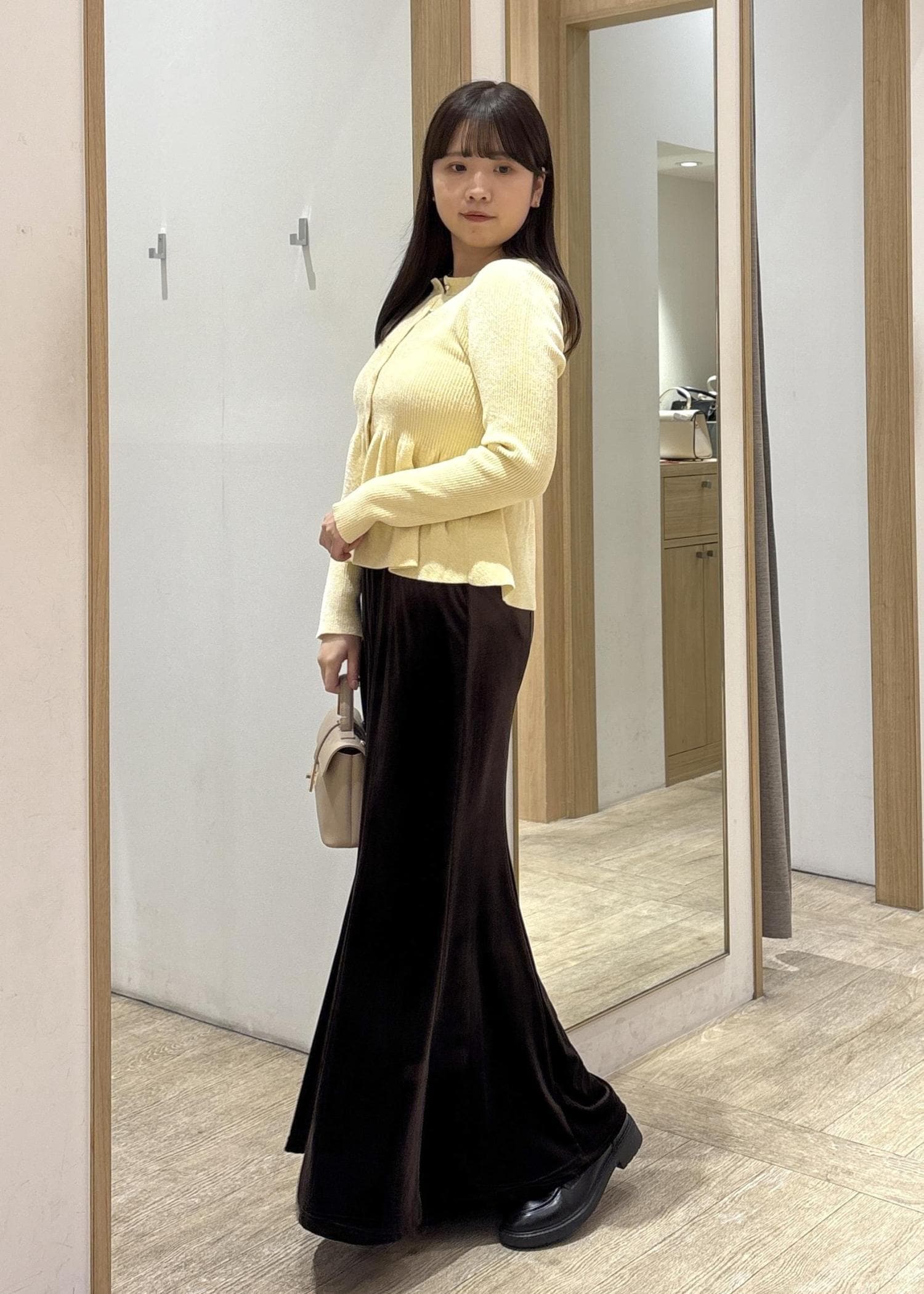 マーメイドシルエットも裾に向かって緩やかに広がるタイプで腰まわりを拾いすぎずきれいに落ち感が出ます。