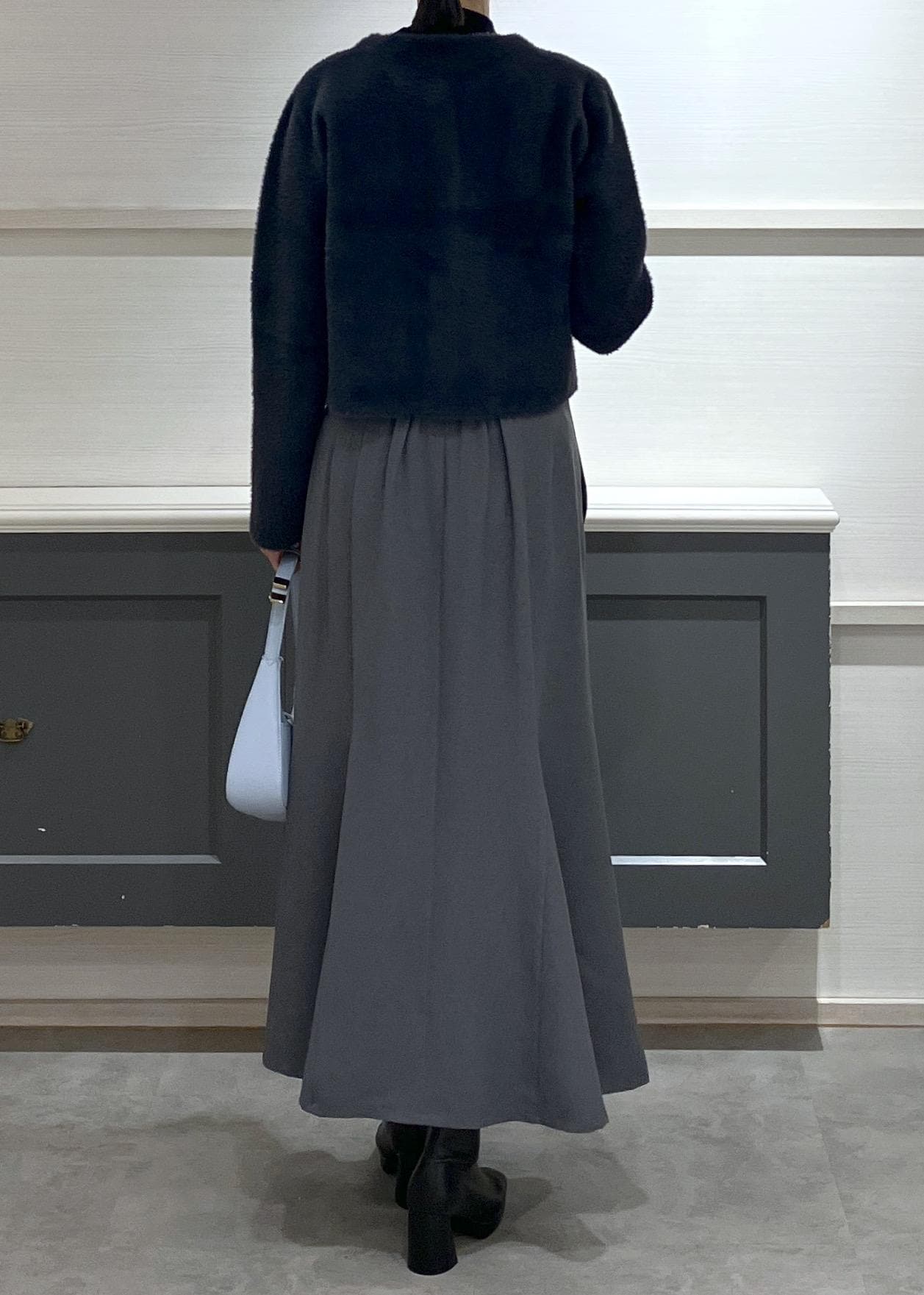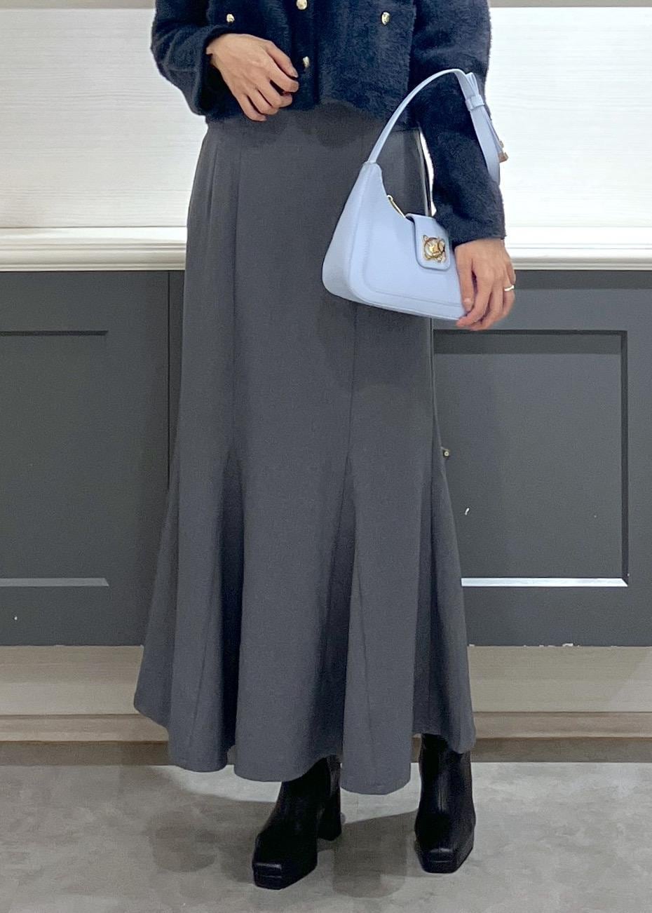 美easyマーメイドスカートのグレーにネイビーのカーディガンは上品でお出かけしたくなりました♡