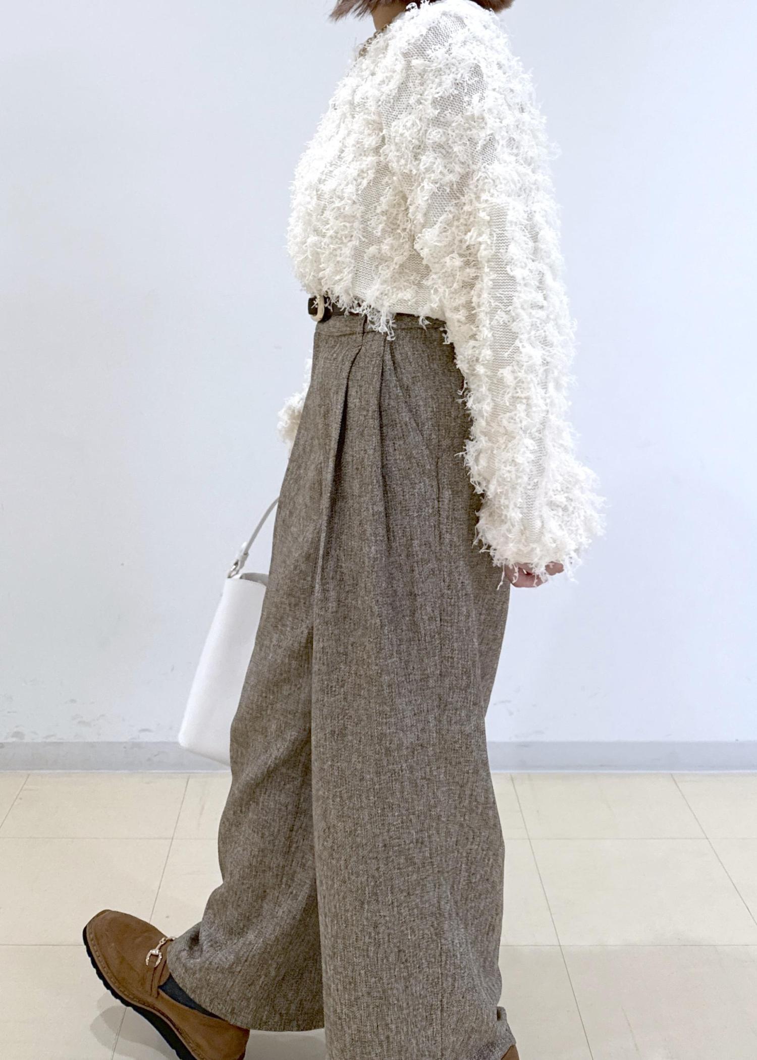VISツイード2タックワイドパンツブラウン系 / S¥4,612レビューツイード素材ですが、サラッとしていて柔らかい生地なので楽に履けました◎