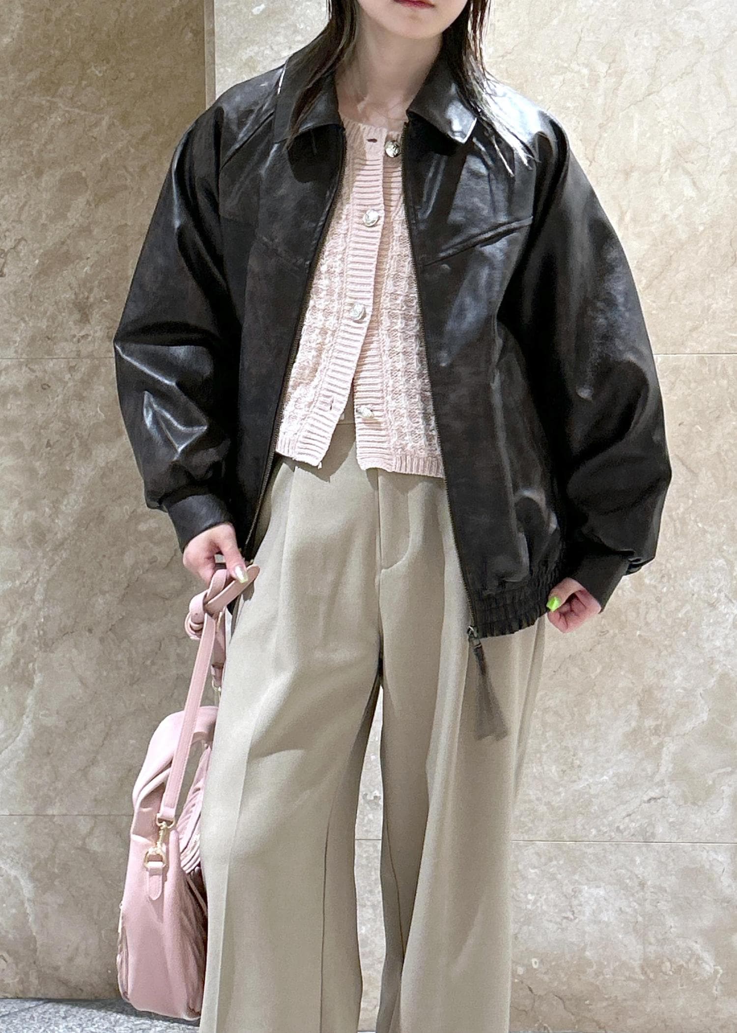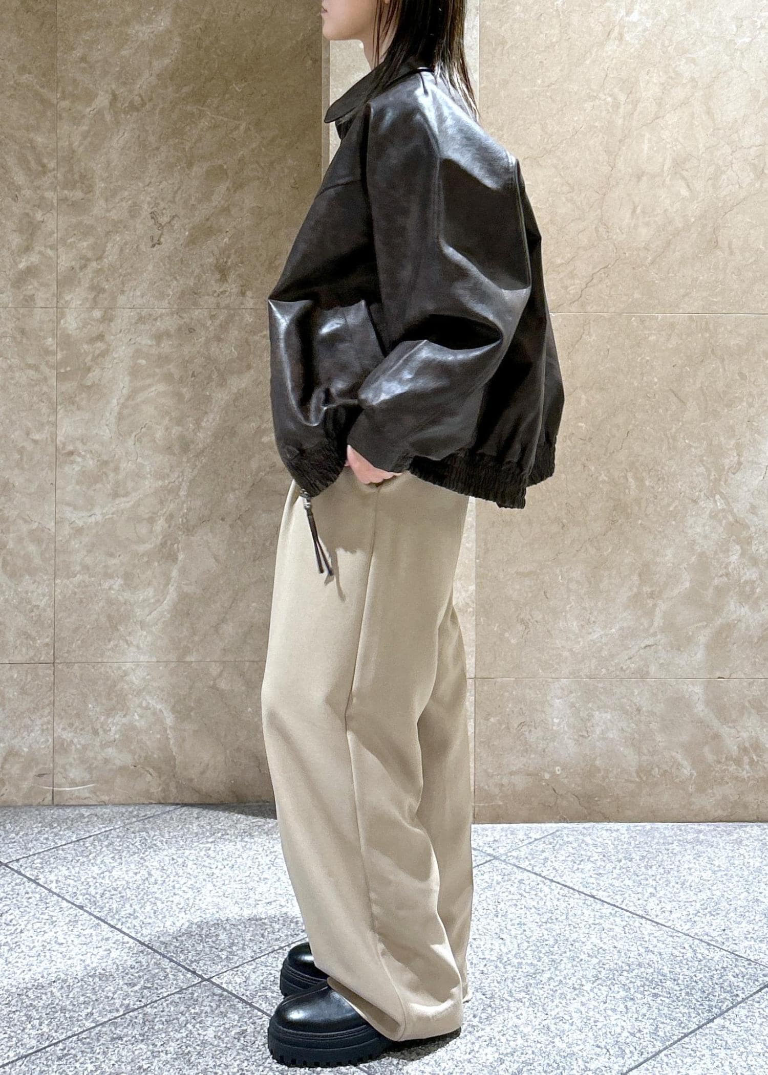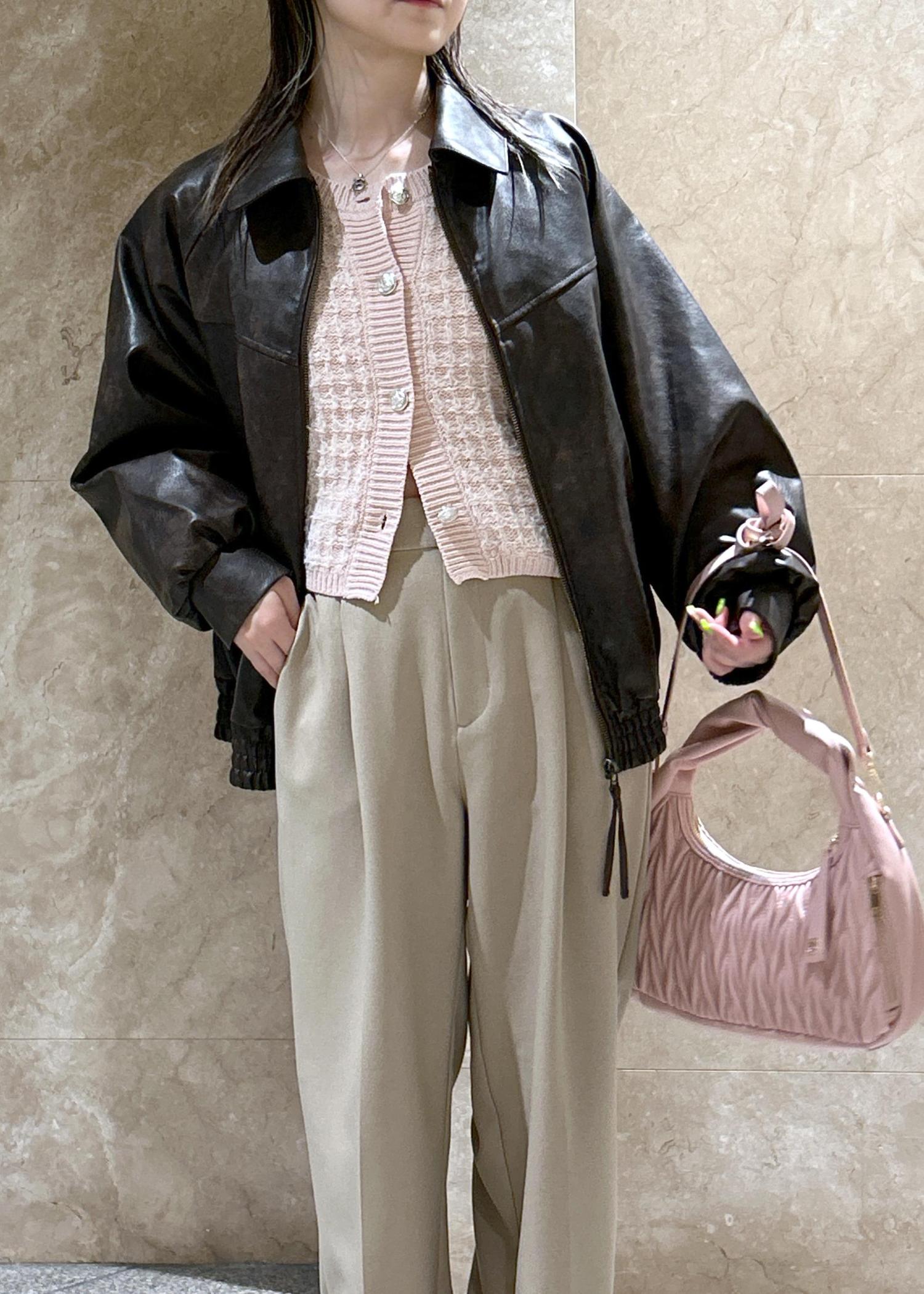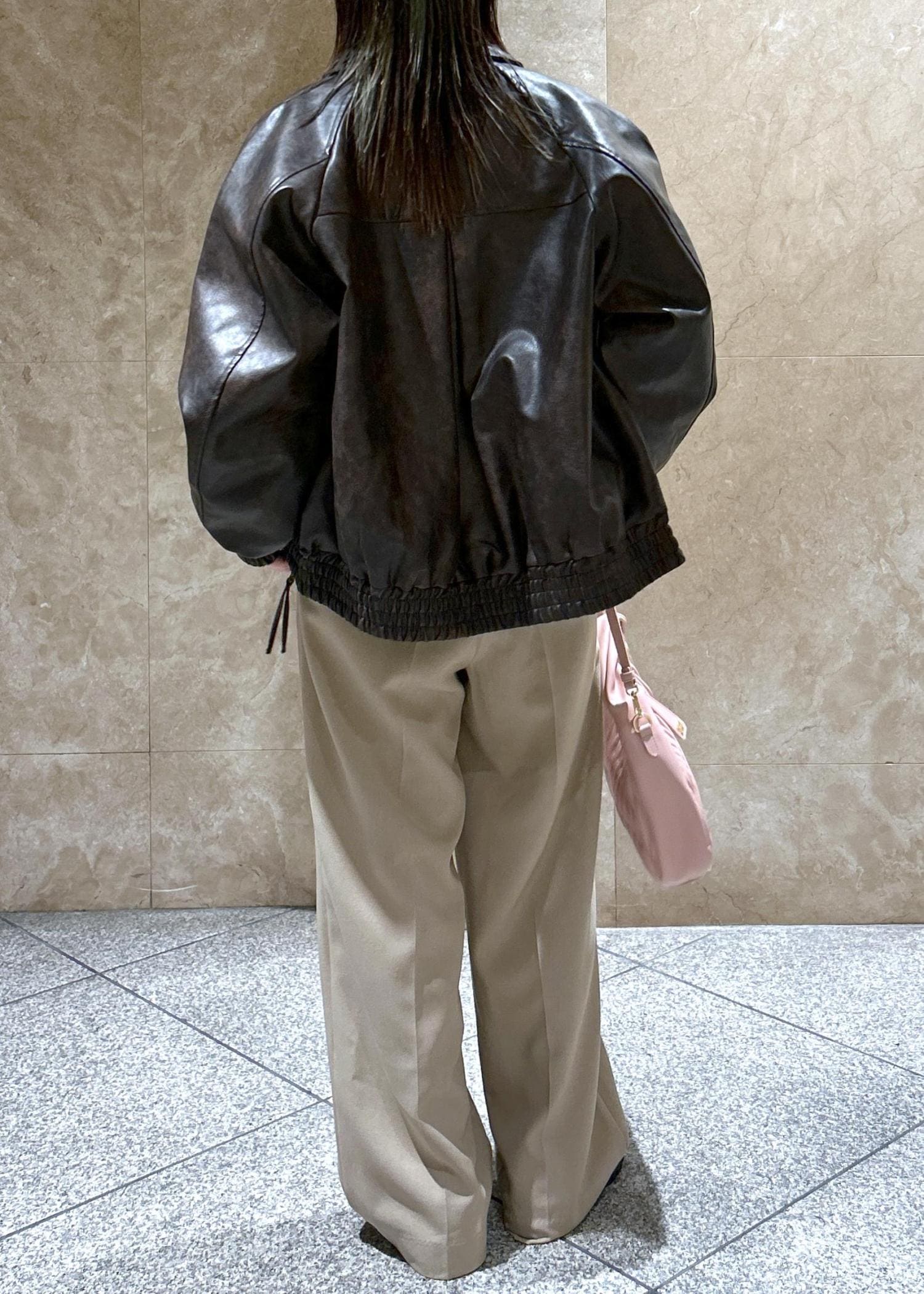 VIS合皮&スエードライクジップアップブルゾンダークブラウン系 / F¥10,989レビューオーバーサイズですが、袖口と裾部分にシルエットがあるのでもたつかずに着ていただけます◎