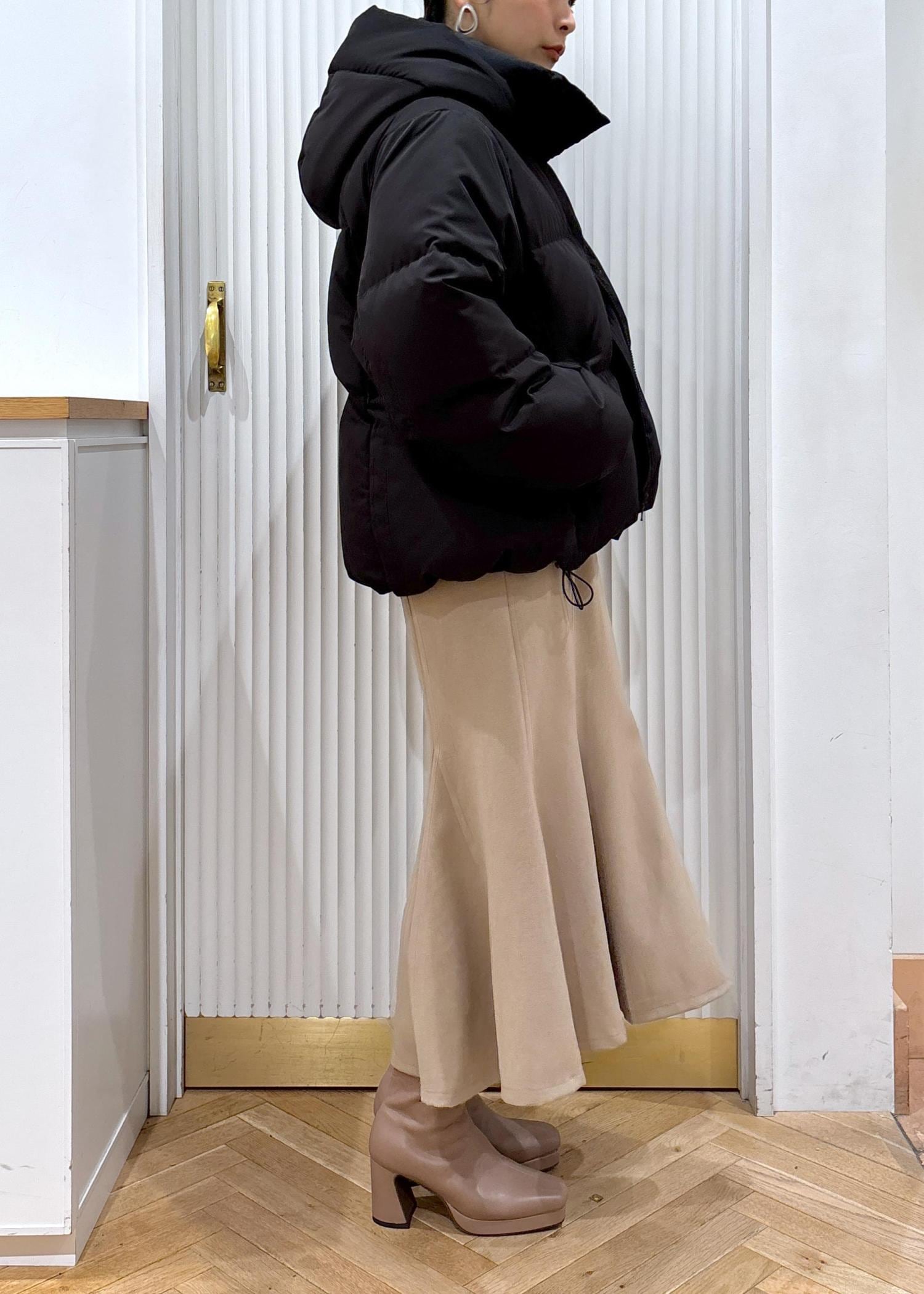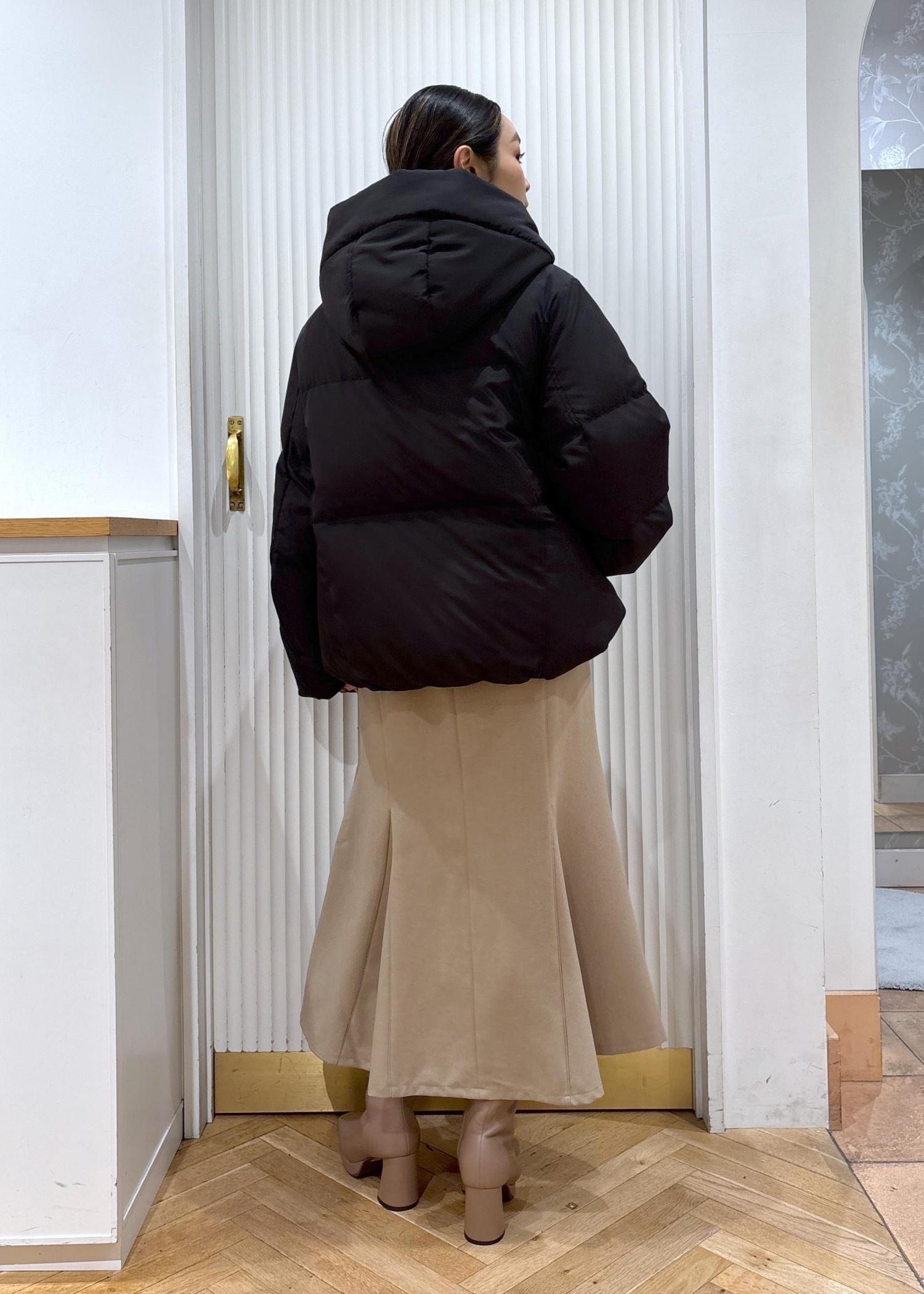 スッキリとしたショートダウンだからスカートにも好バランスで、急な雨や雪にも安心の撥水加工!