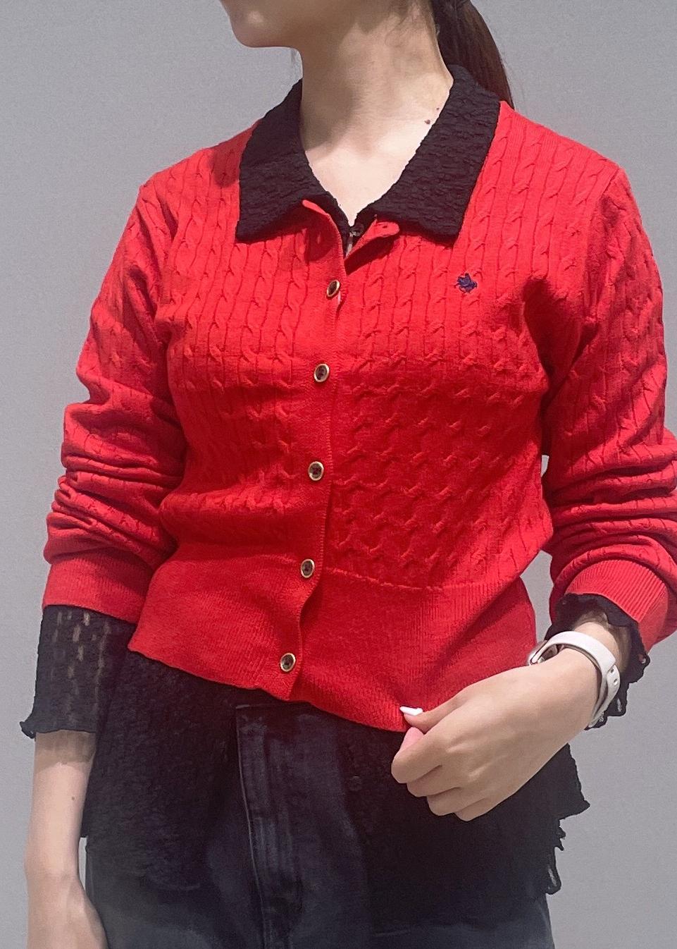 VIS【POLO BCS】VIS別注ミニケーブルノーカラーニットカーディガンレッド / F¥6,930レビューPOLOコラボのカーディガンです