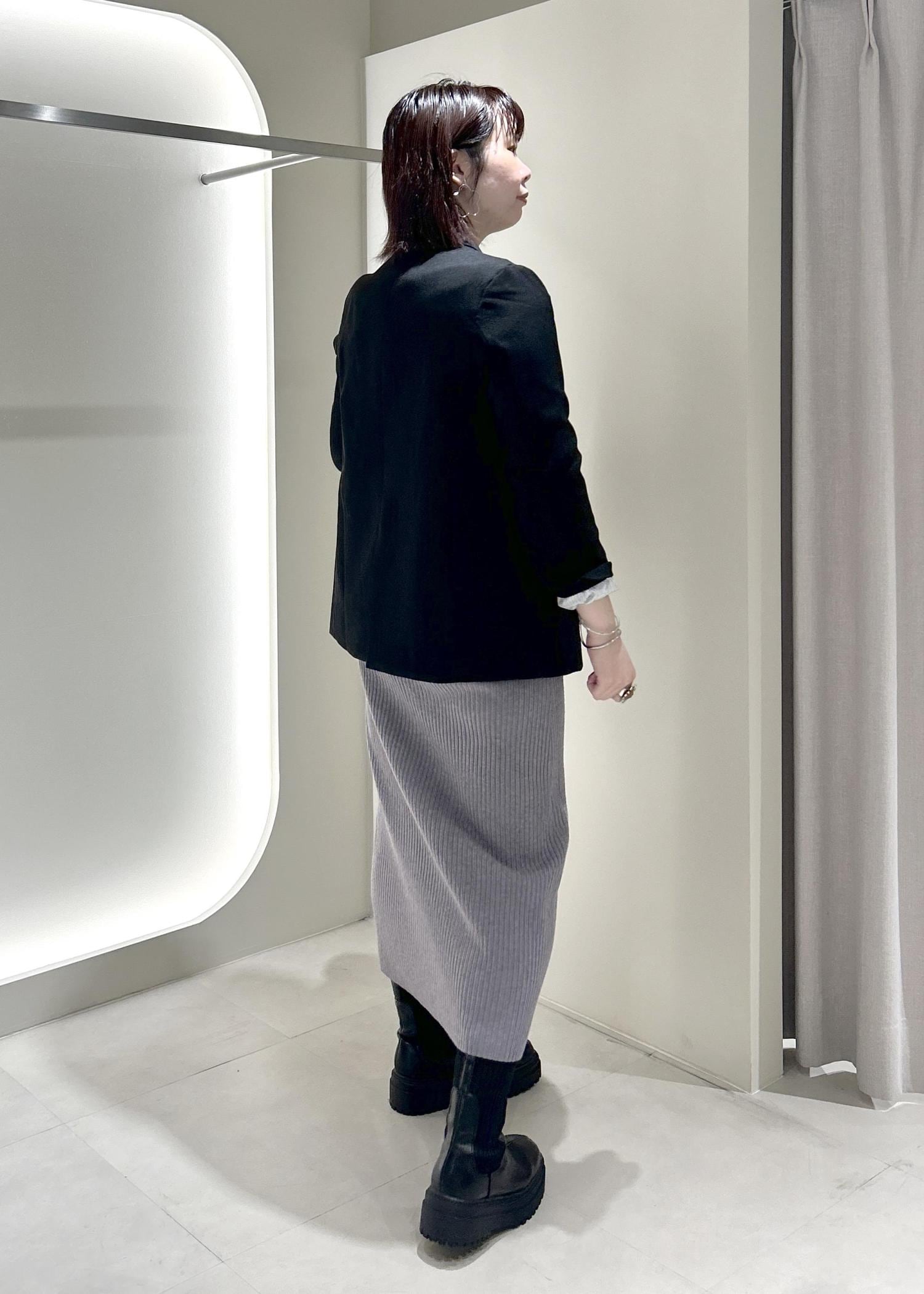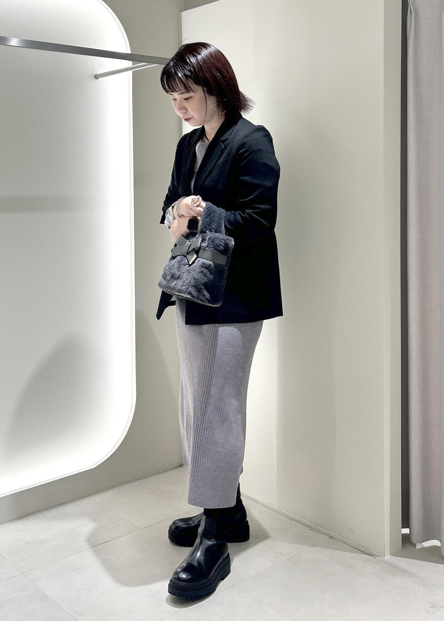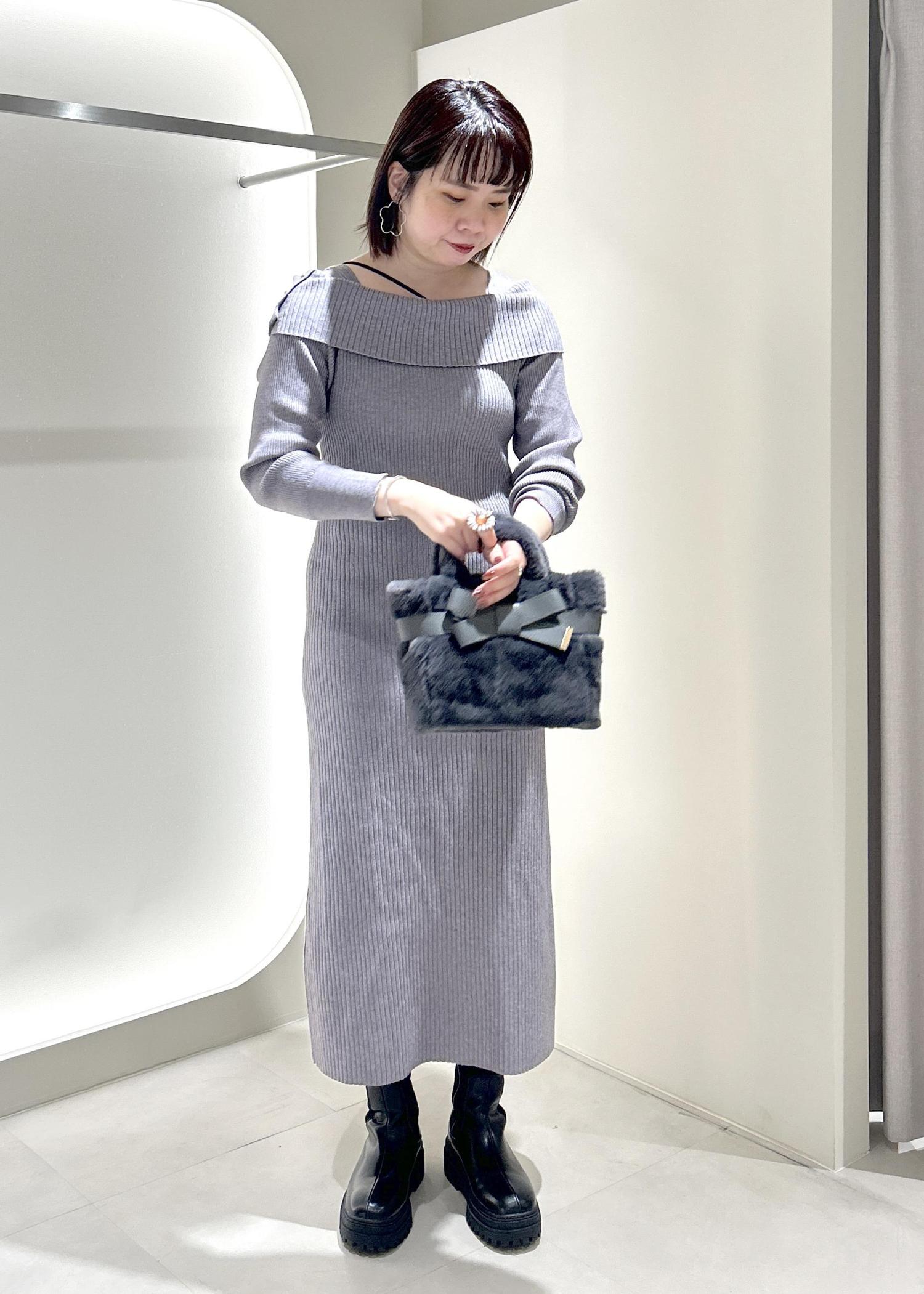 VISアシメオフショルリブニット美シルエットワンピース/着丈が選べるグレー / F¥8,899レビュー163cmでFSサイズ着用です。