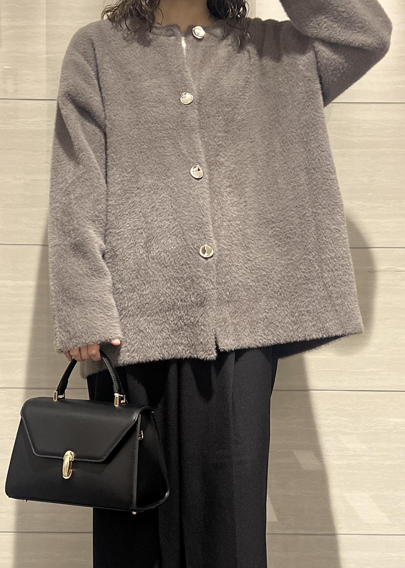 VIS接結メタルボタンミニフェザーニットコートブラウン / F¥9,999レビュー手が隠れる袖丈で、