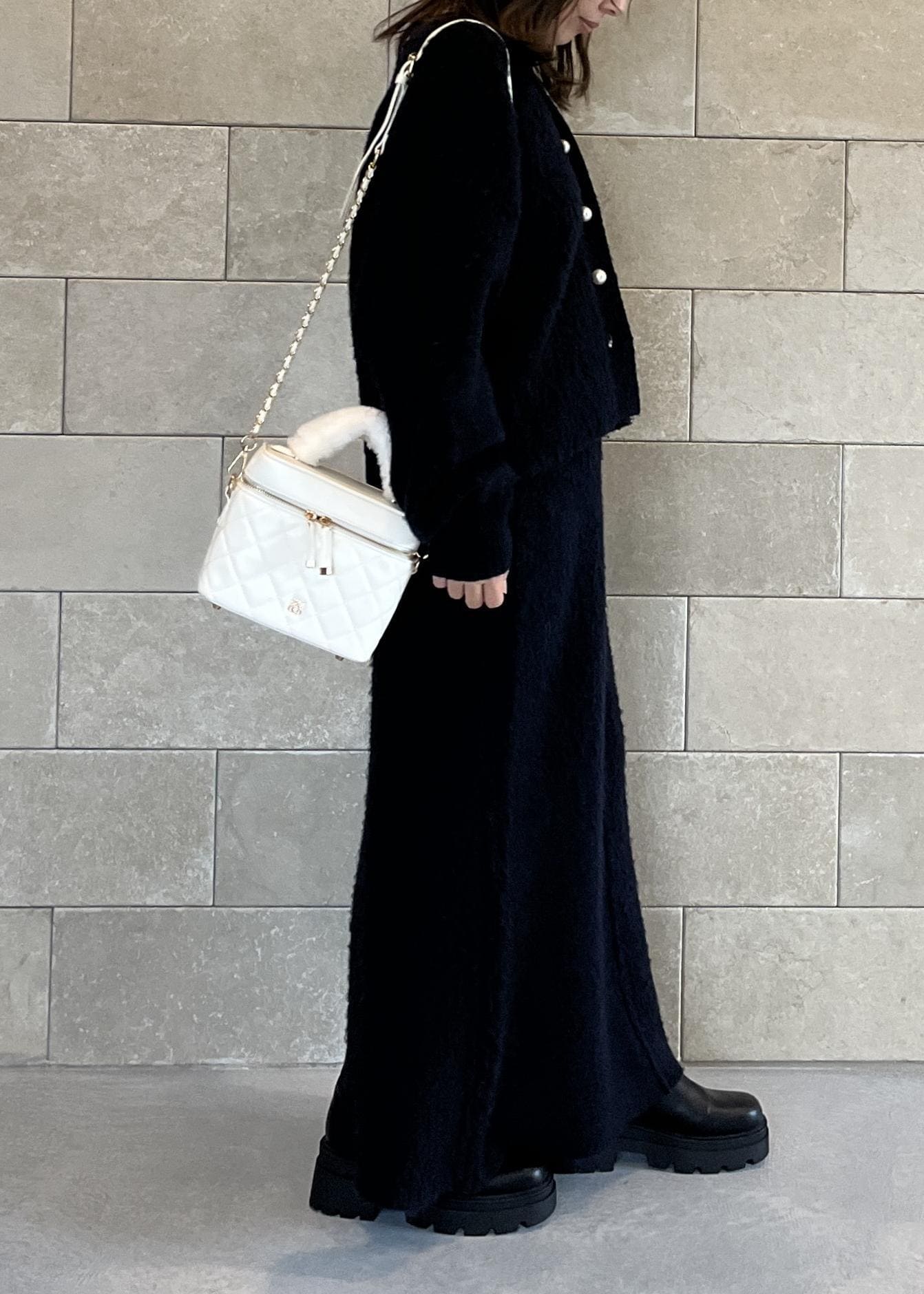 足元はボリュームブーツでバランスをとって、白バッグで軽さをプラスしました