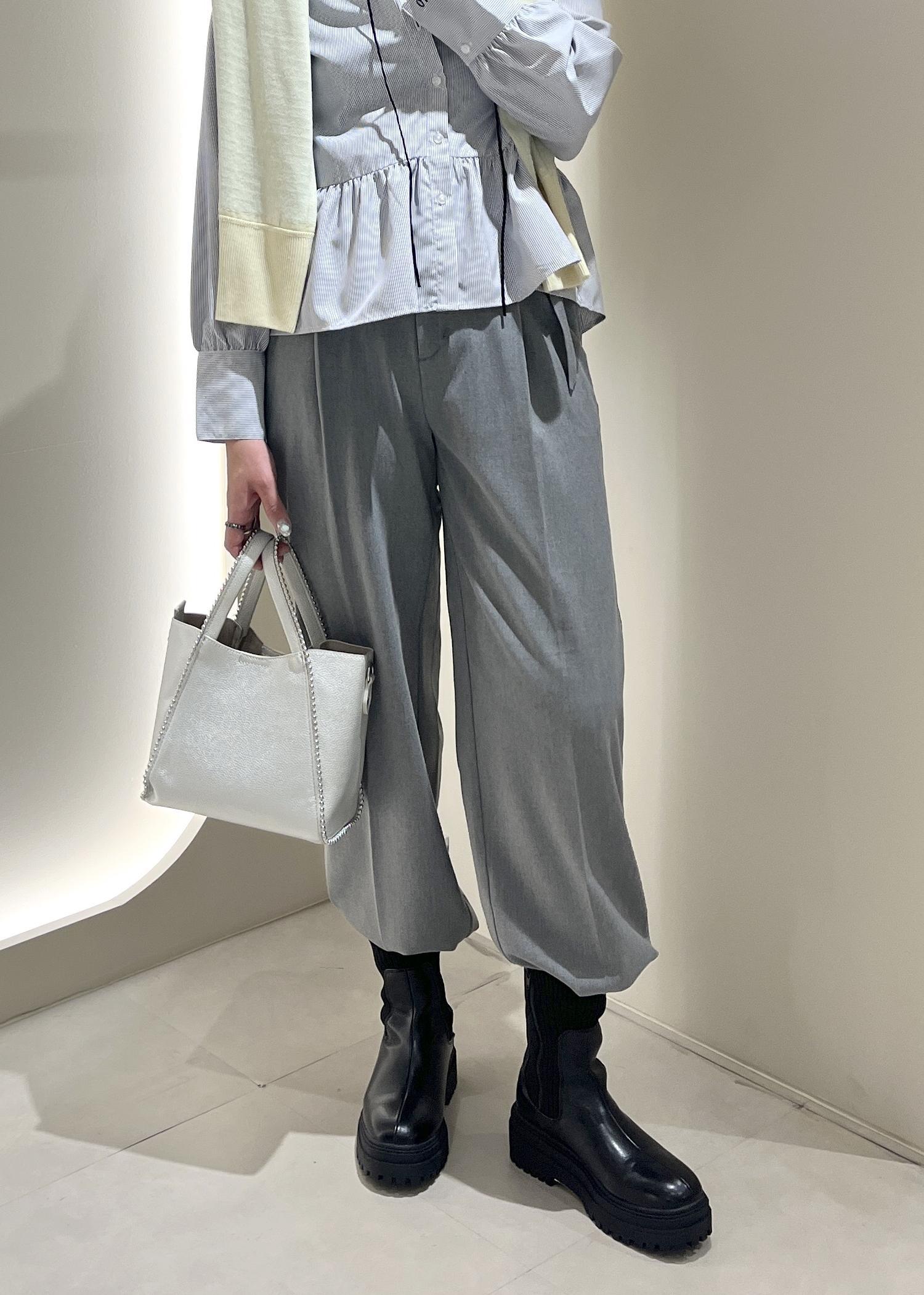 程よいゆるっと感があり、スリムストレートですっきりシルエット!高身長/Lサイズで、足首の丈感でした。ウエストのデザインもポイントになるのでインスタイルも着映えしますよ! -