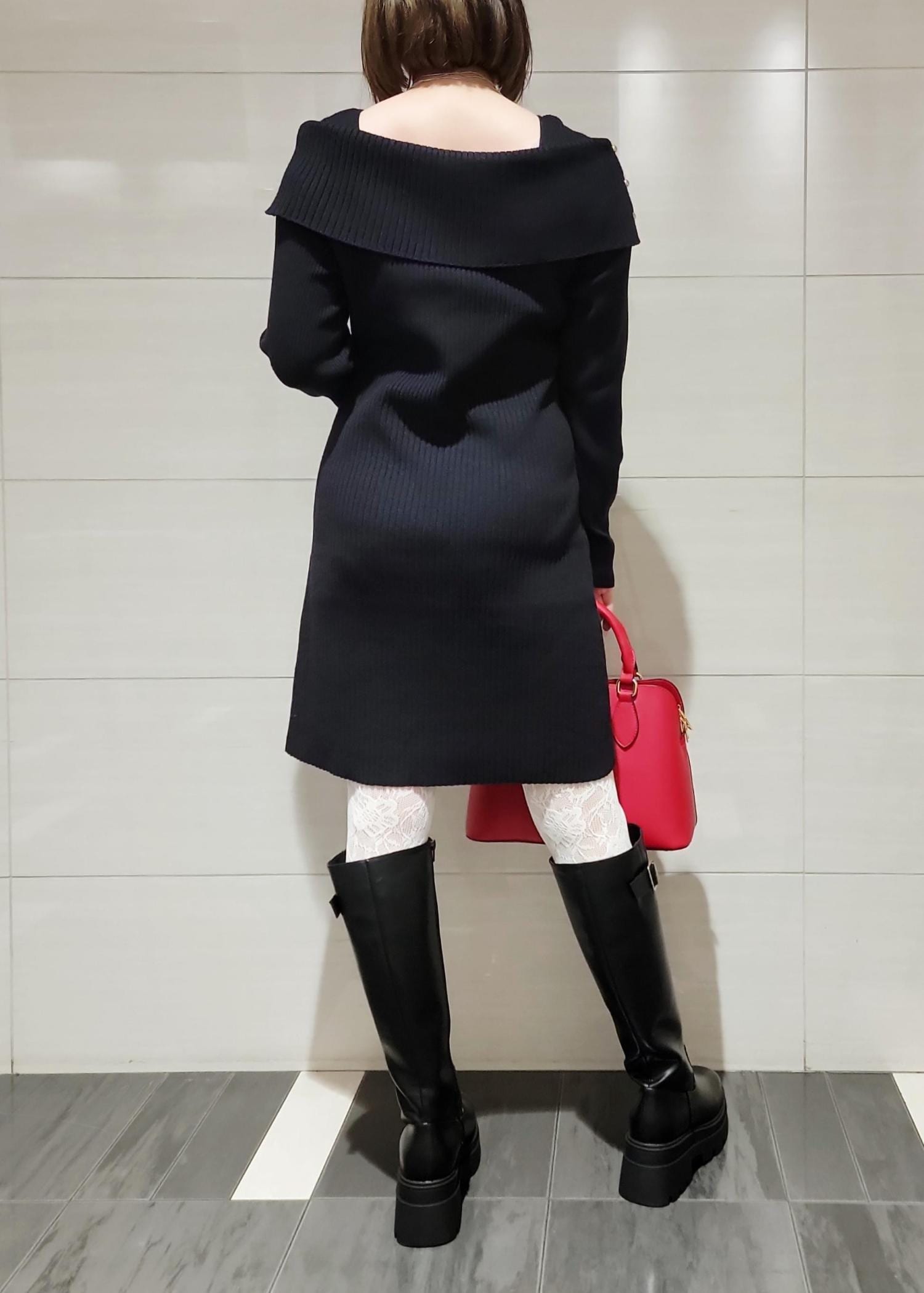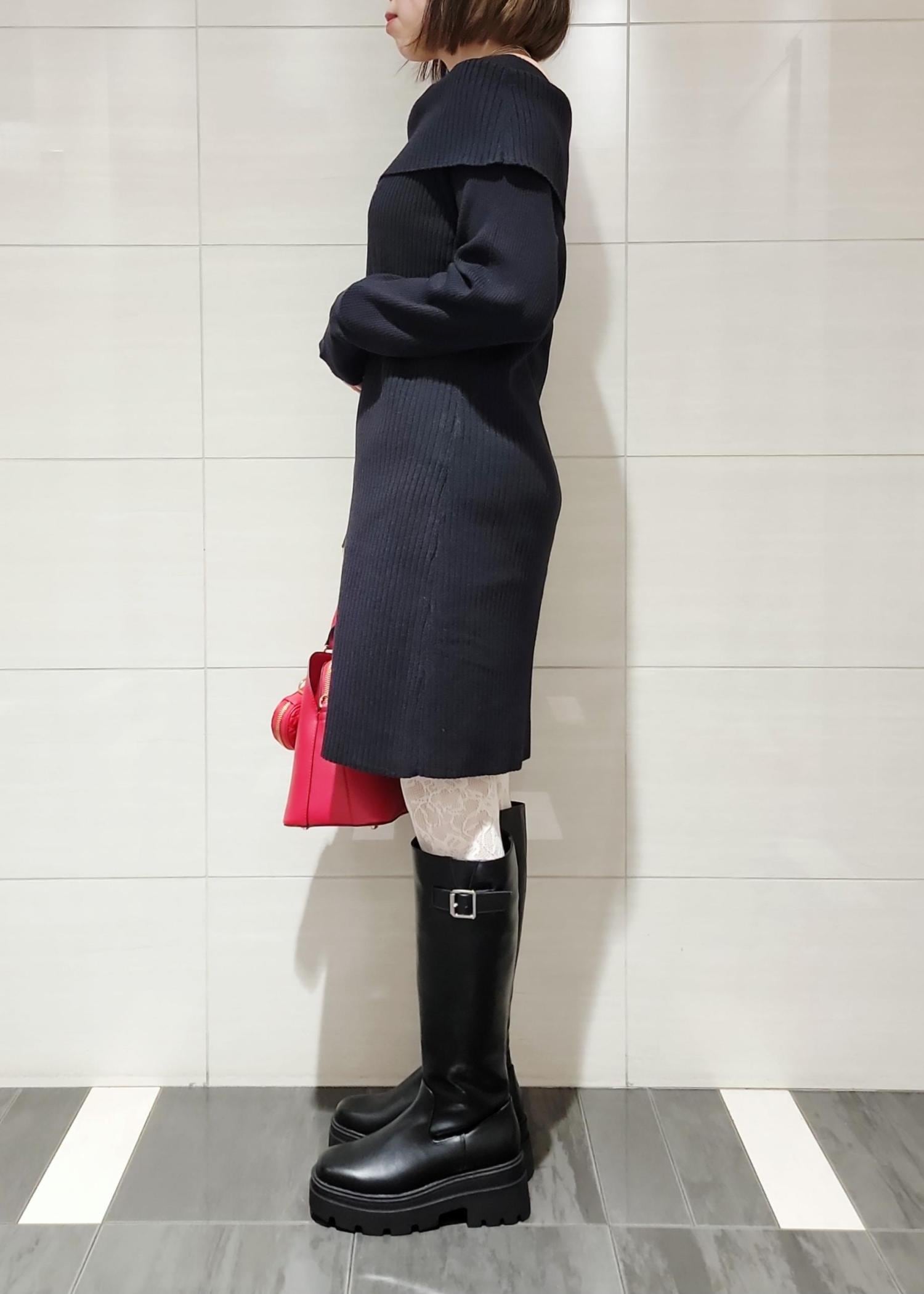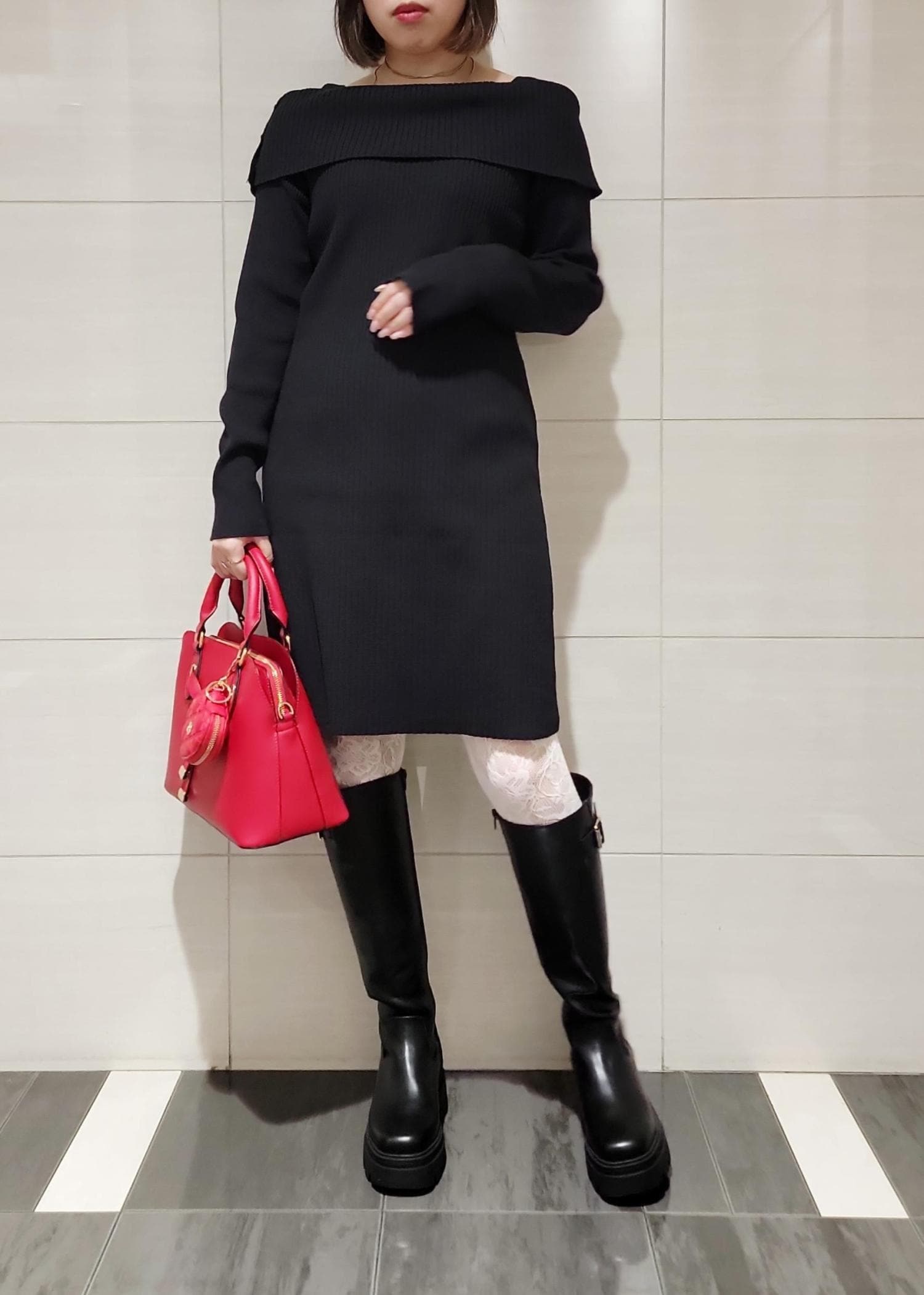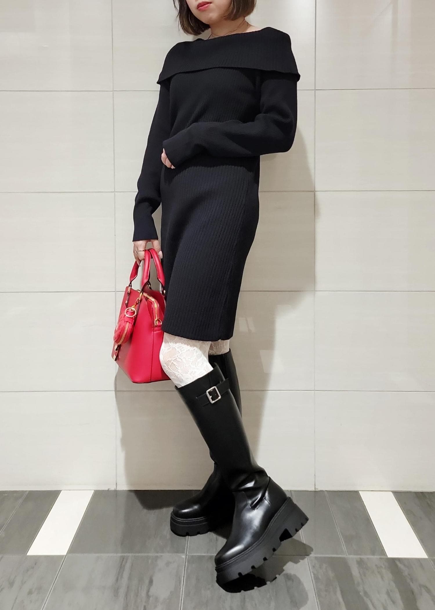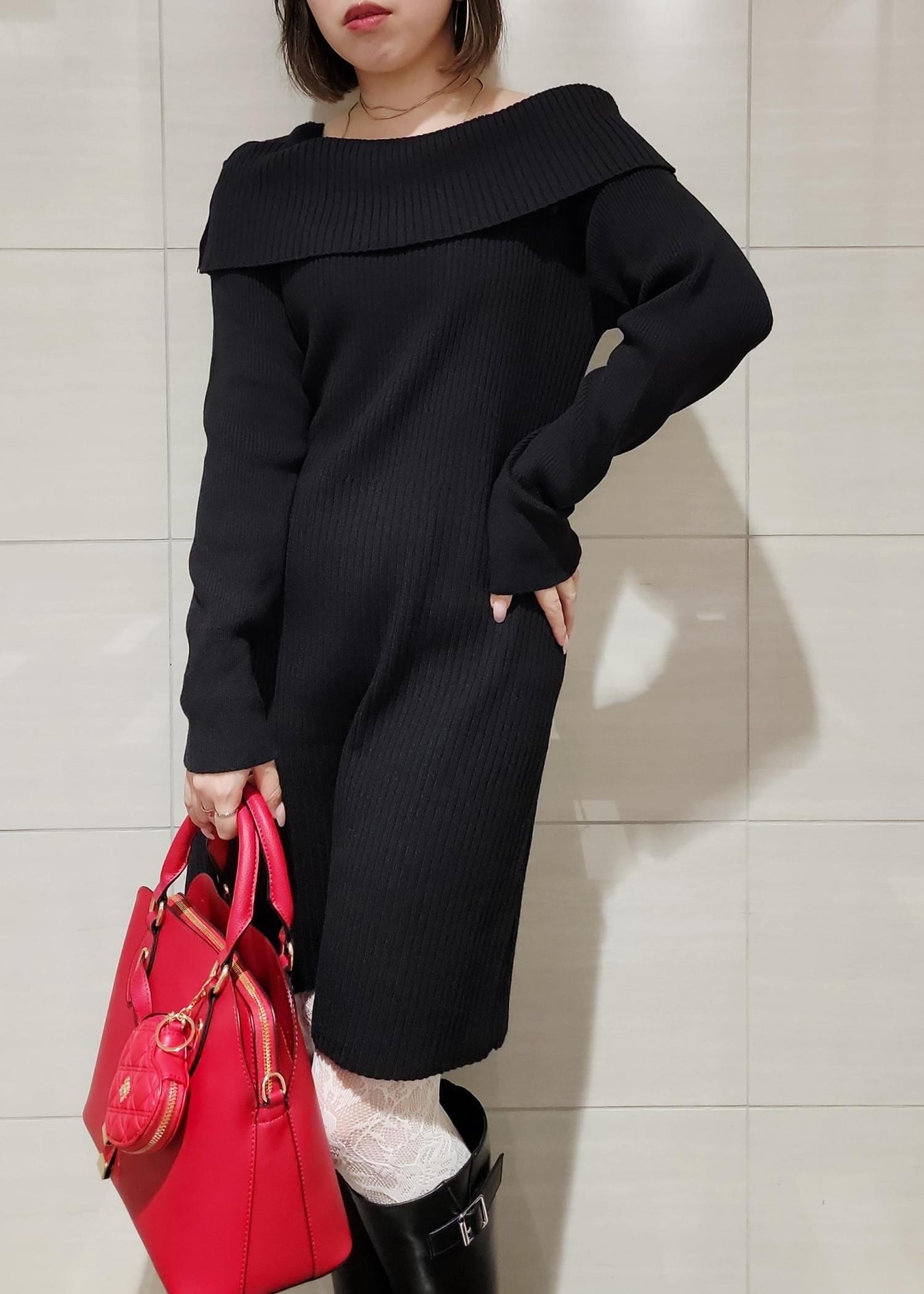 VISアシメオフショルリブニット美シルエットワンピース/着丈が選べるブラック / FS¥7,119レビューチクチク感のないニット素材で、伸縮性も高いので着心地◎!