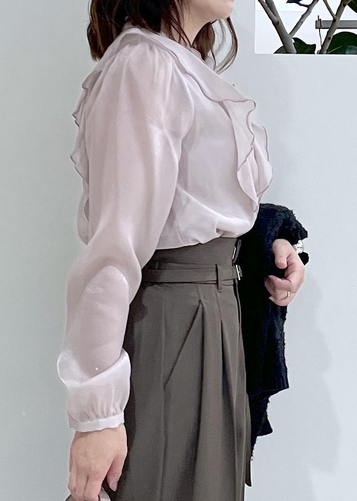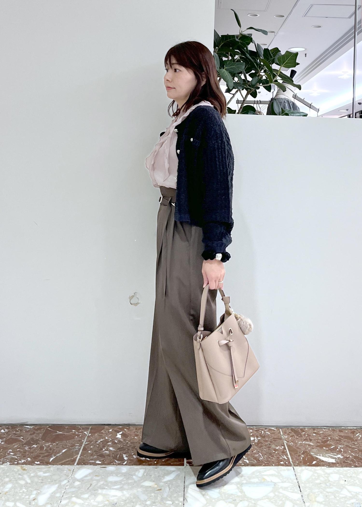 シンプルな合わせですが、ブラウスがポイントになり華やかなコーデになりました。