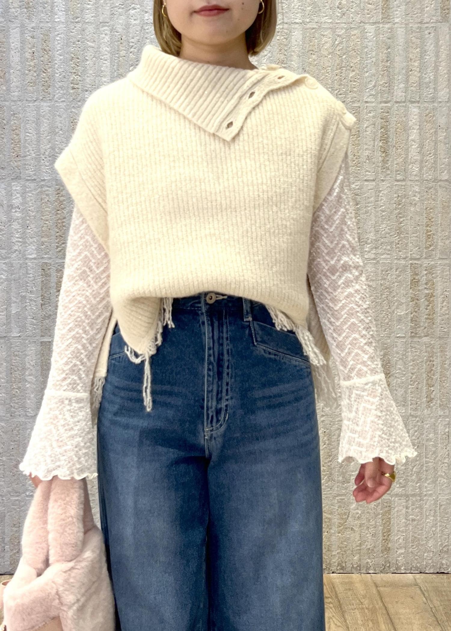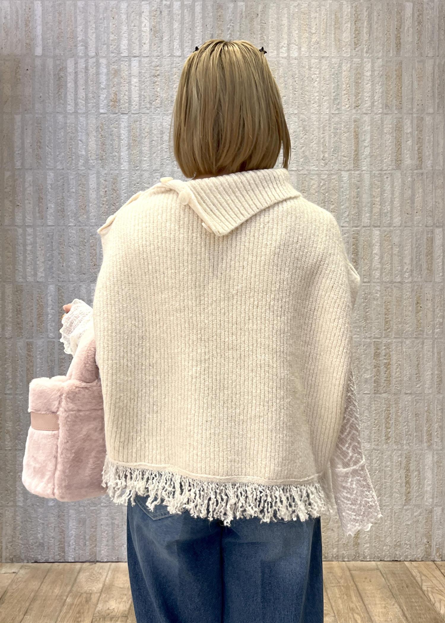 VISボタンデザインポンチョベストオフホワイト / F¥4,939レビューシャツやロンT、薄手のリブニットなどと