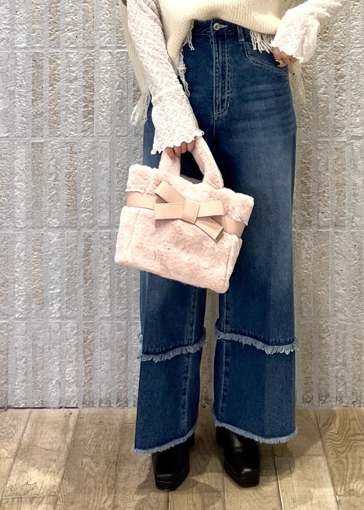VIS【2WAY】ファーリボントートバッグピンク / F¥6,919レビューショルダーでも手持ちでも使える