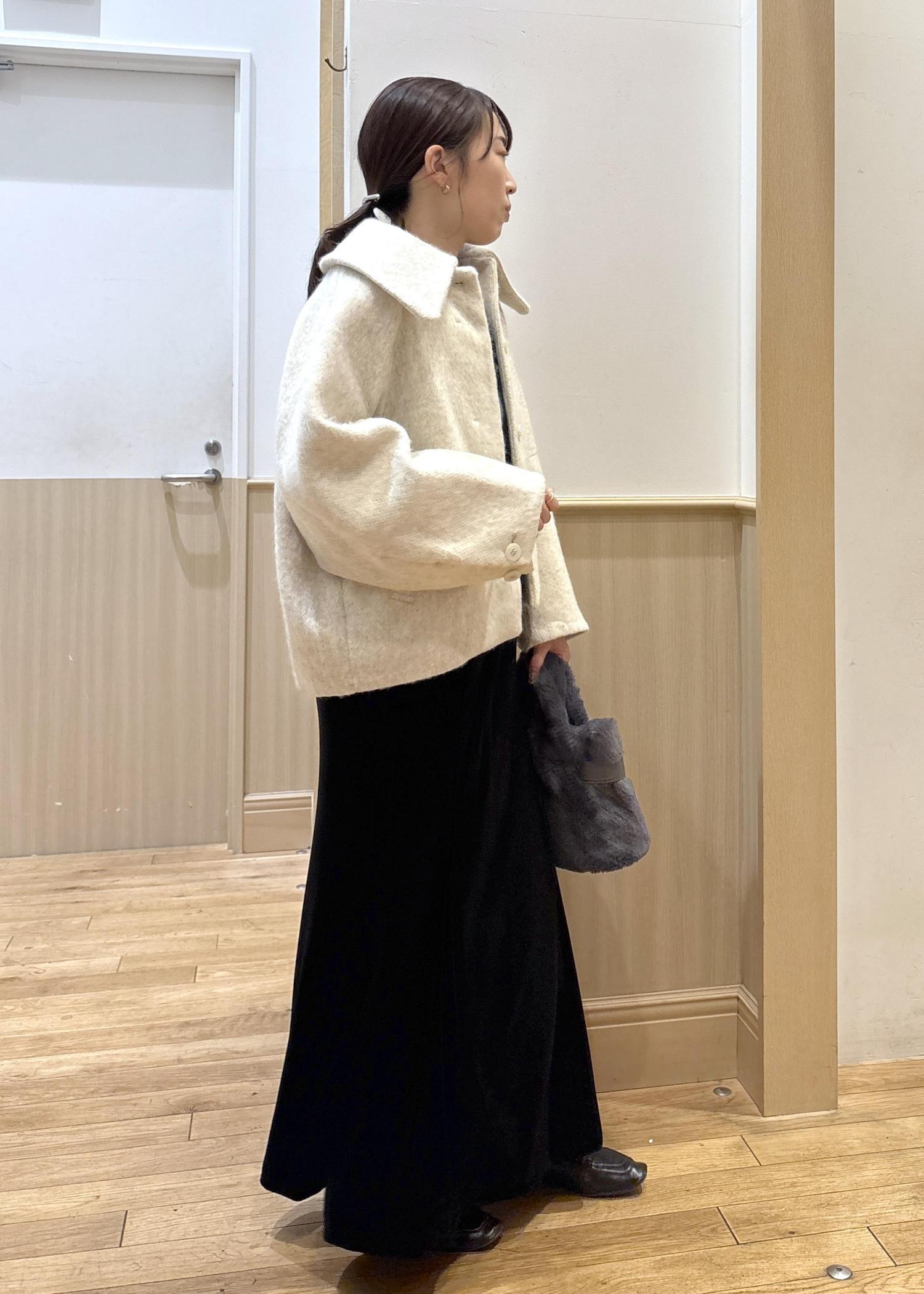 VIS【アウター総選挙1位】ビッグカラーモモンガシャギーショートコートオフホワイト / S¥10,989レビュー丸みのある、ゆるっとシルエットが