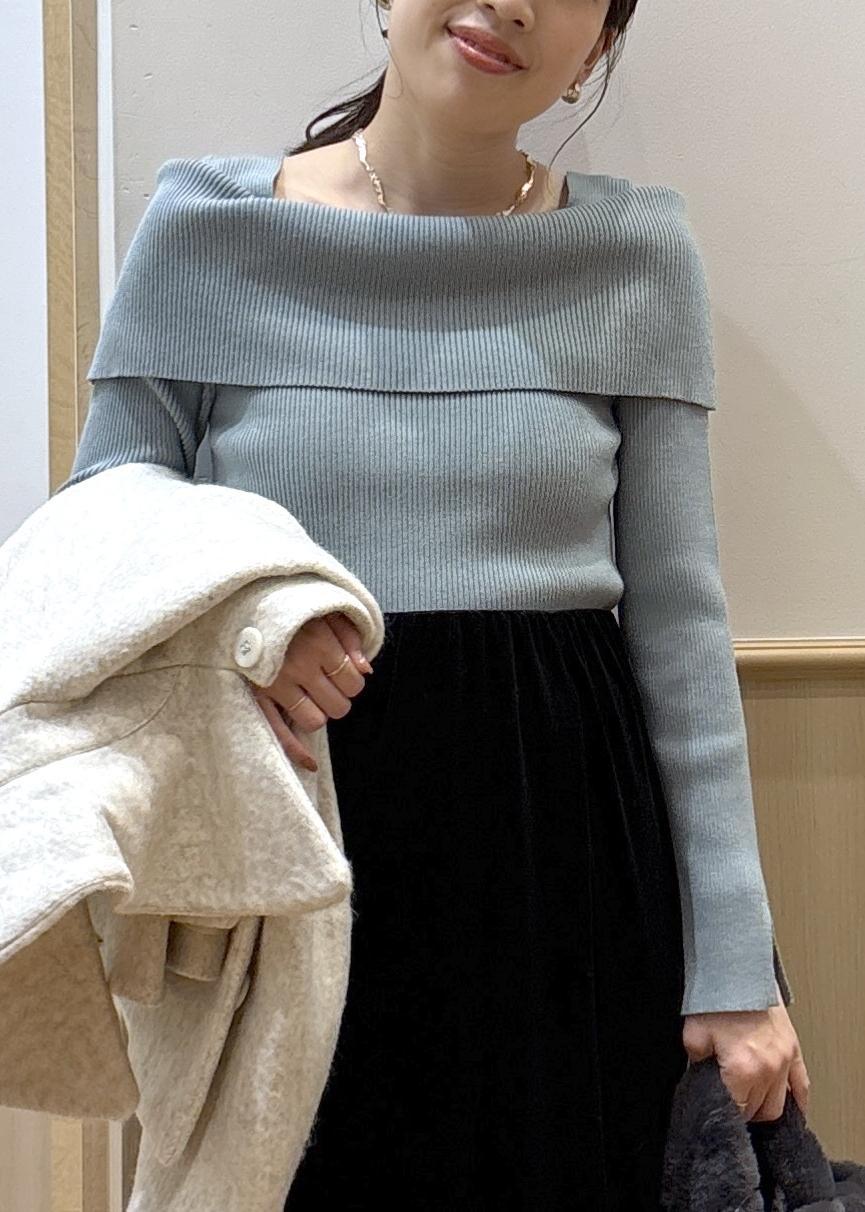 NEW!VIS【美得】オフショルダーモチモチリブニット/好評につき再入荷グリーン系 / F¥5,489レビュー春に即完したオフショルニットが