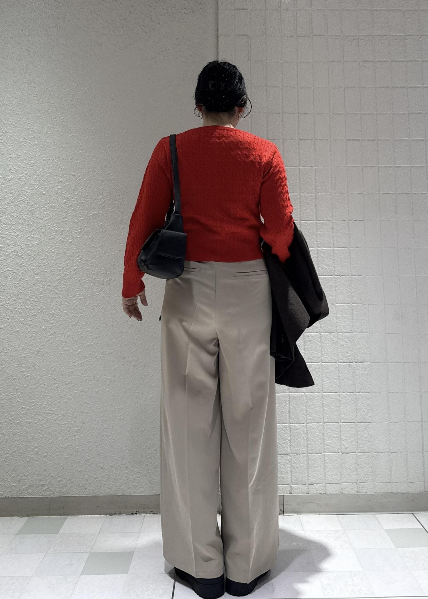 肌に張り付く感じもなくシルエット的にもワイドパンツなのに細見えします!