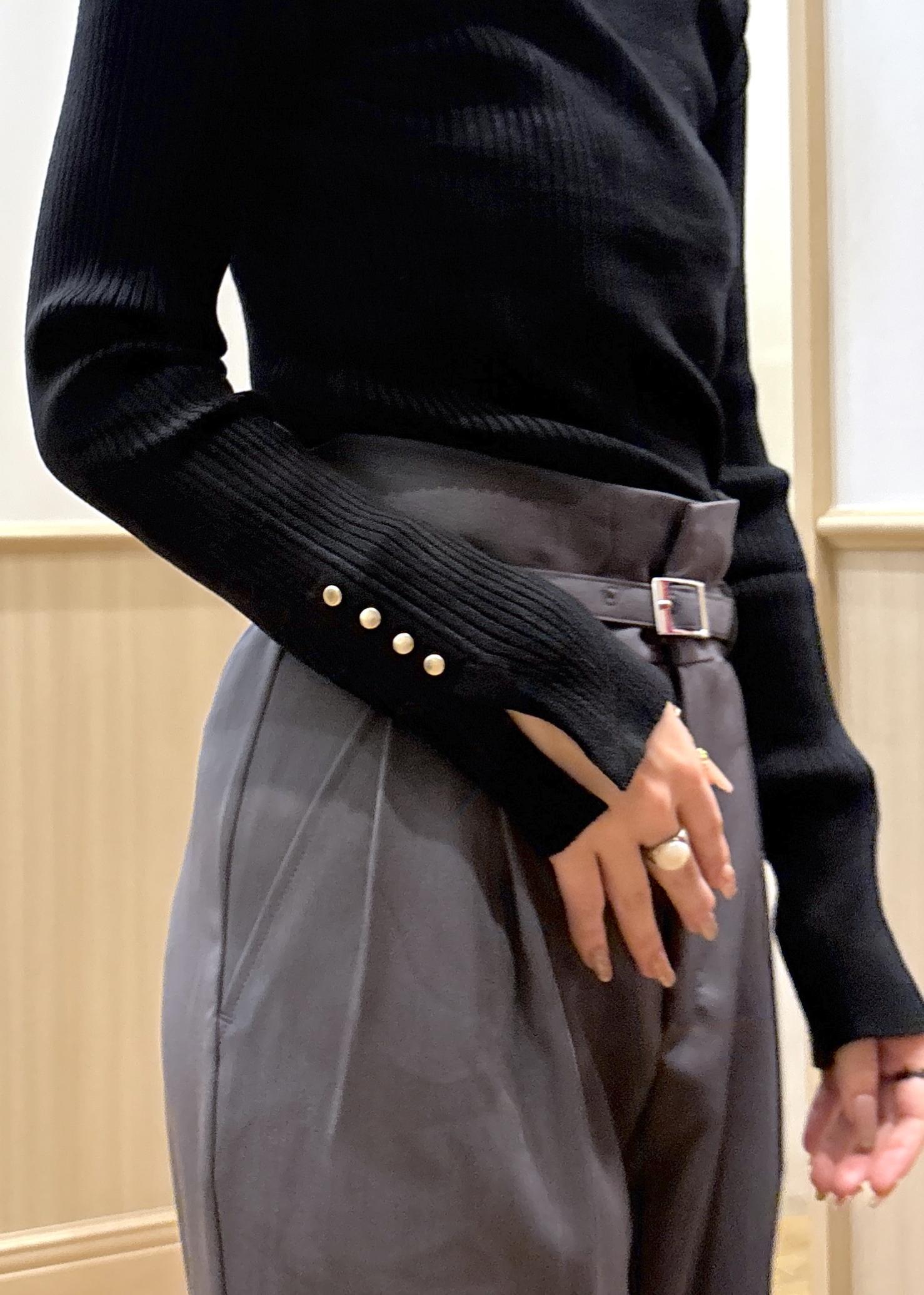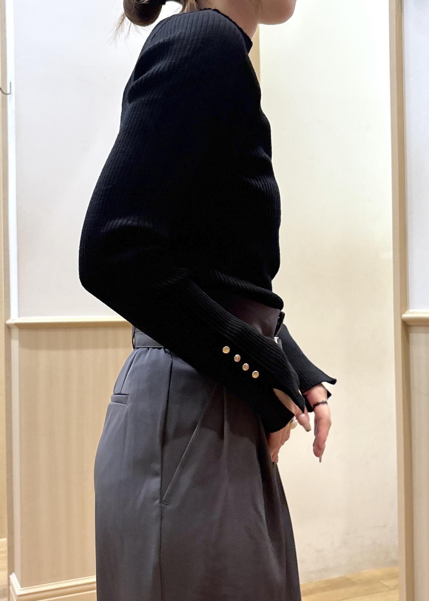 NEW!VISスリーブ釦アクセントリブニット/WEB限定FSサイズ・静電気防止ブラック / F¥4,389レビューきれい見えするピッタリ系のシルエットが可愛いニットです。