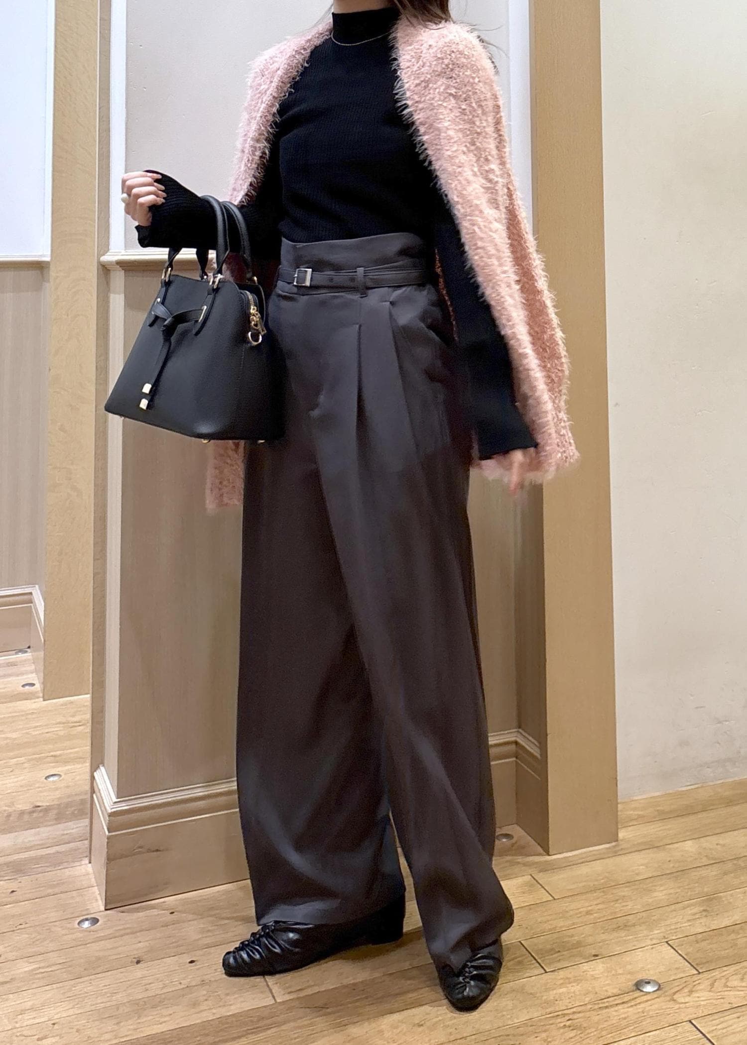 VISベルトディテールタックワイドパンツ/イージーケアチャコール / S¥6,589レビューしっかりハイウエストのワイドパンツです。筒幅かなり大きめですが、股上長めかつベルトラインが綺麗なウエストを作ってくれるので、お尻周りはゆったりしつつも細見え効果があります。
