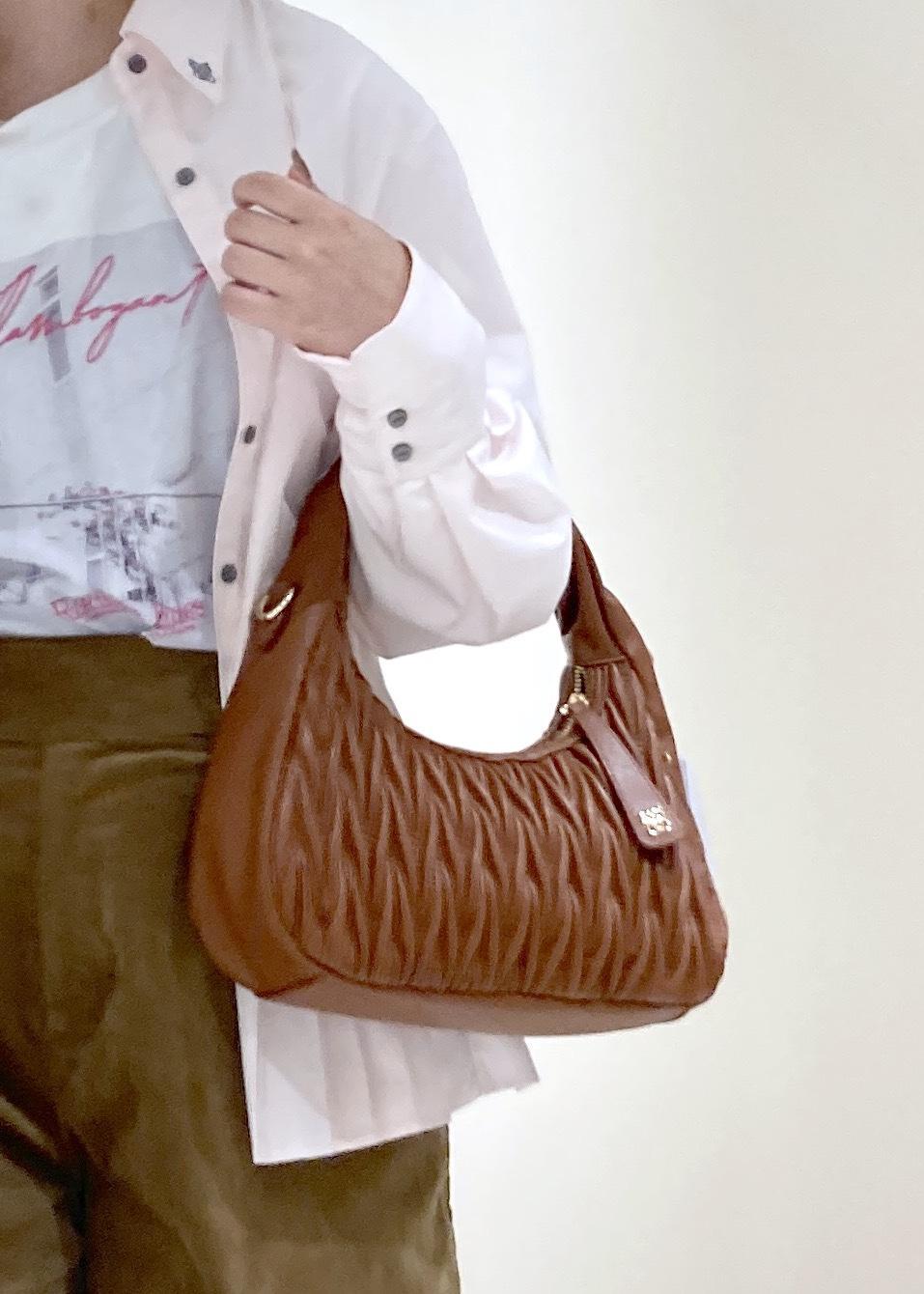 ギャザーのデザインが程よく存在感を出してくれるのでコーデのアクセントとして取り入れるのがおすすめです! -