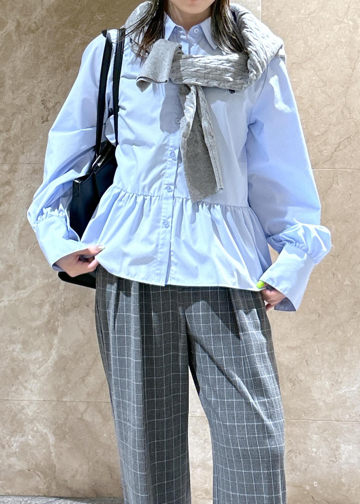 着丈は少し短く、程よいペプラムデザインが腰周りをさり気なくカバーしてくれます!