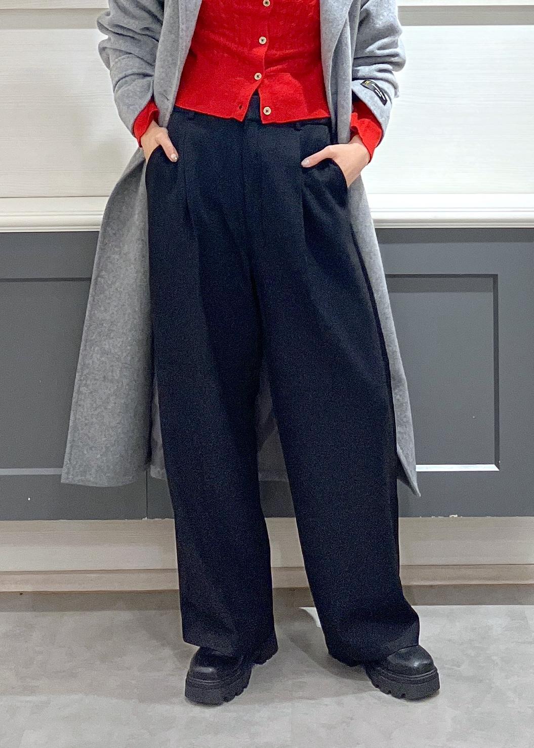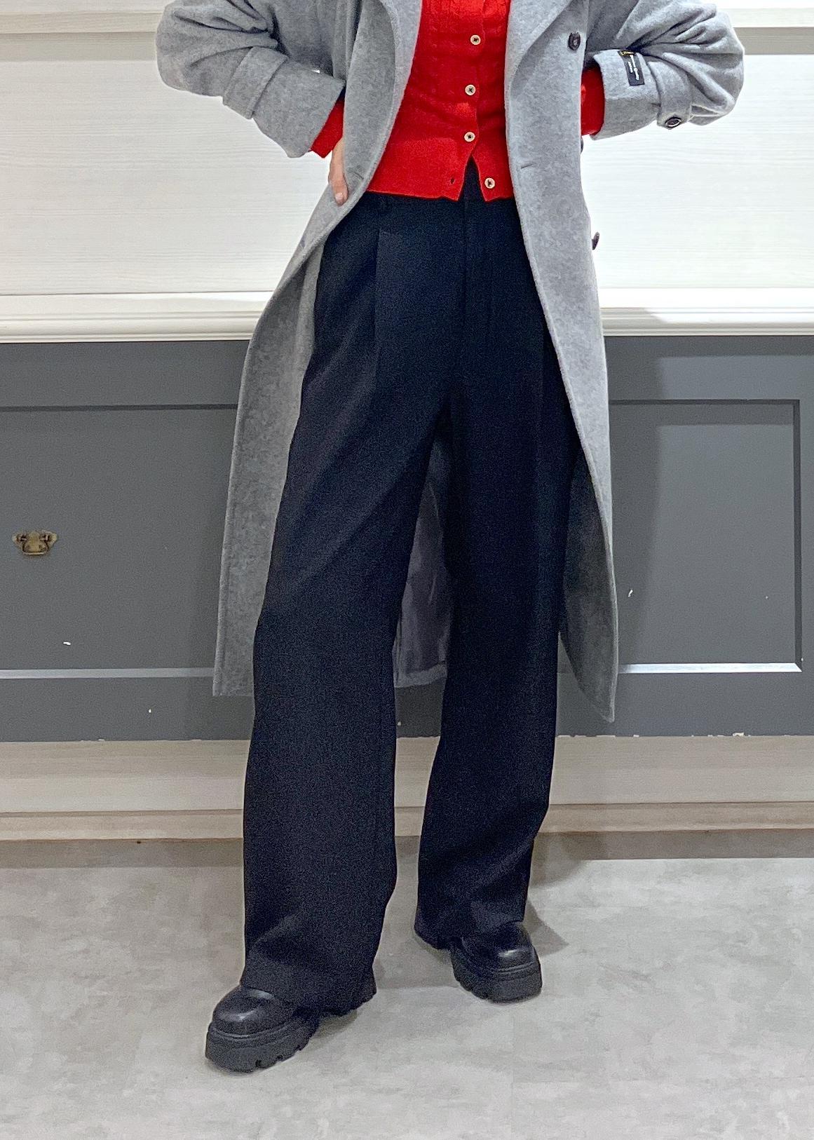 ウール混なので軽く、ゆとりがあるのでニットなどの肉厚トップスも快適に着込めました♩ -