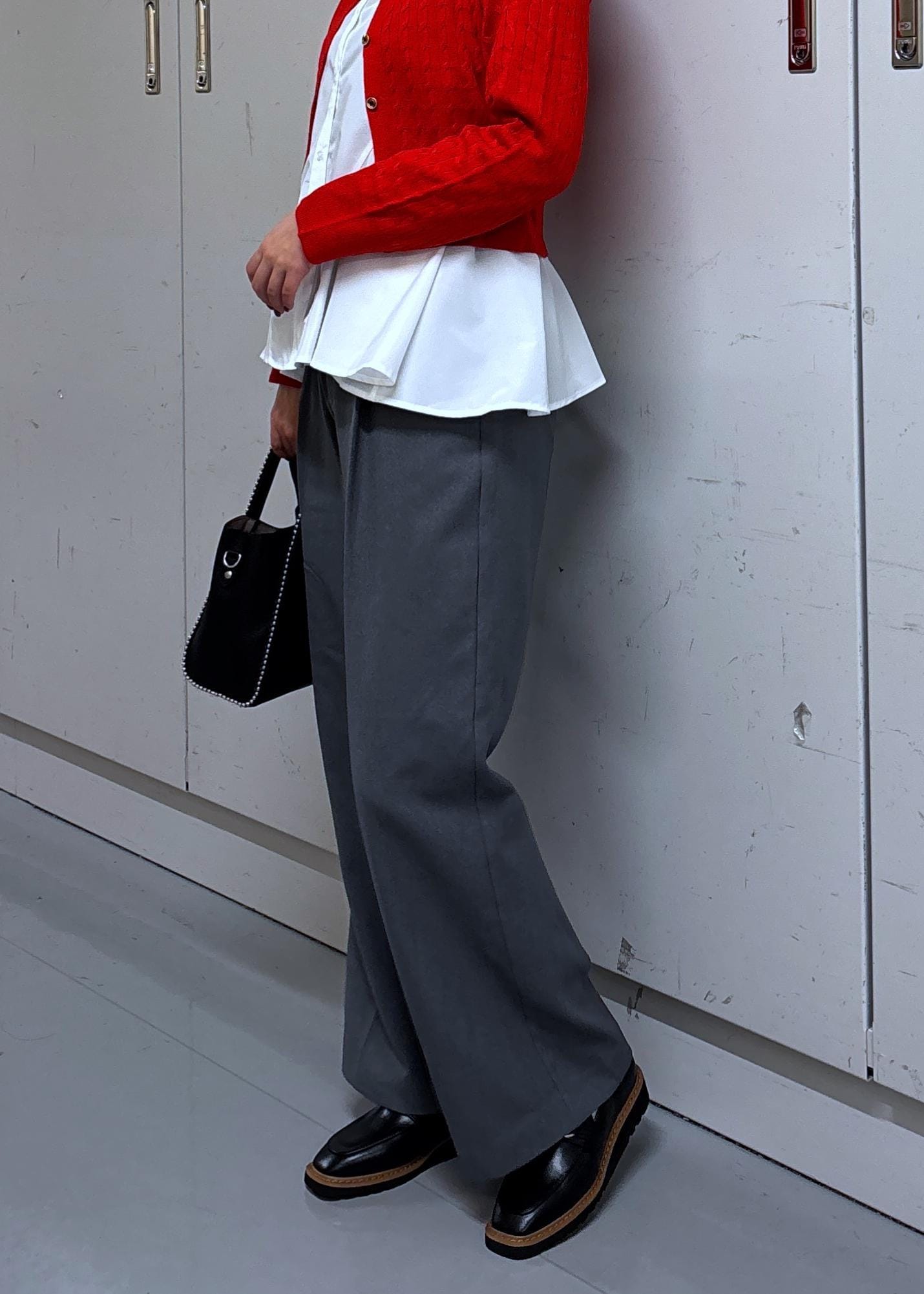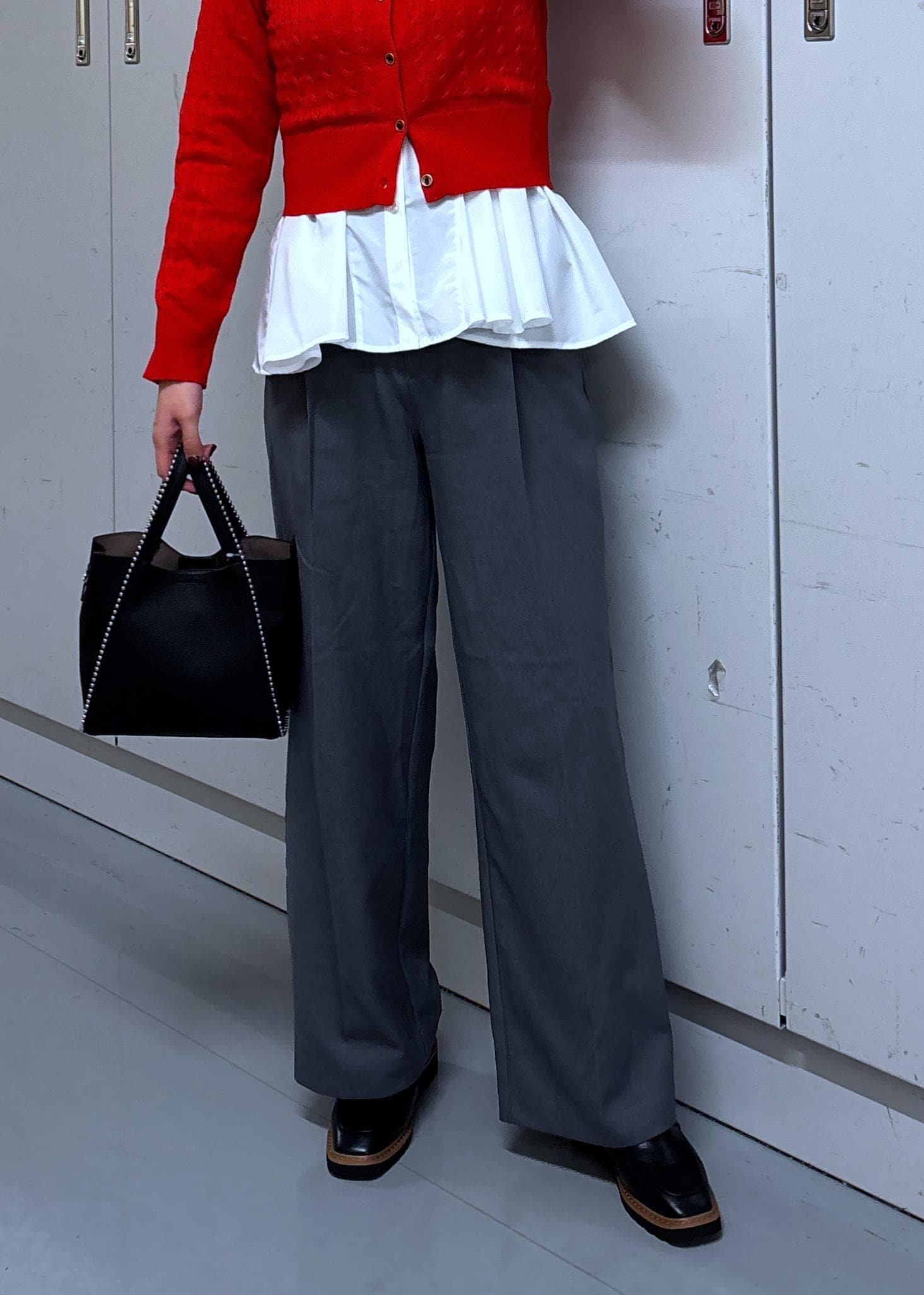 VIS【美easy】ウーリッシュワンタックワイドパンツ【セットアップ対応/洗える】グレー / L¥6,589レビュー着丈かなり長いです。身長173センチでぺったんこの靴だとギリギリ床に生地が付くかつかないかくらい。ウエストも拳1つ入るくらいなので、ボタンによるサイズ調整もオススメ。私はゆったり着たいので好きなサイズでした。