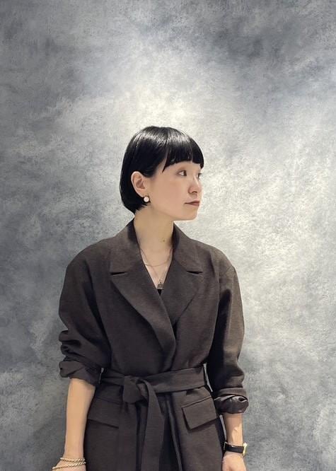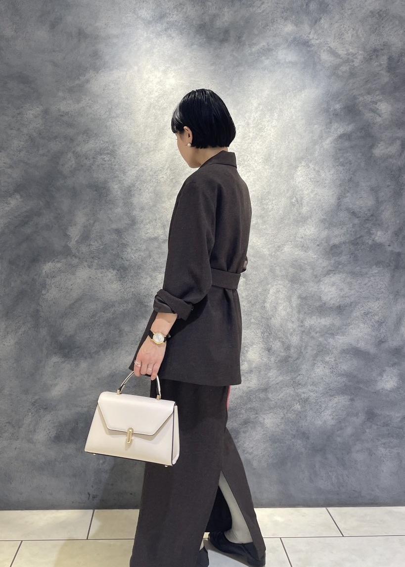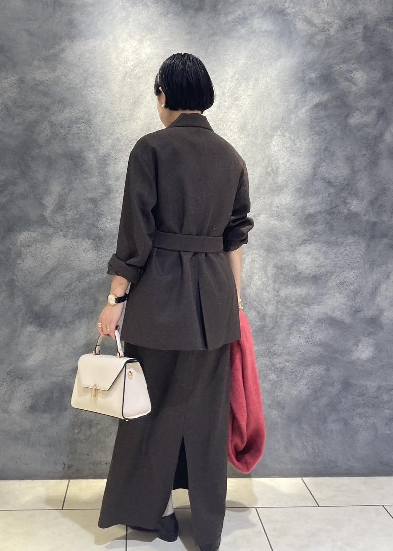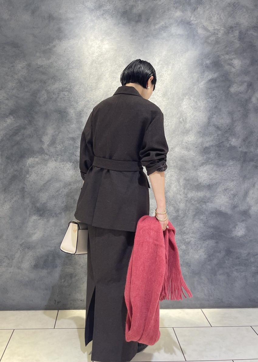 VISヘリンボーンツイードベルテッドジャケット/セットアップ対応ダークブラウン / F¥9,999レビュー154センチでお尻しっかり隠れる着丈です。