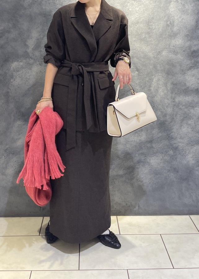 VISへリンボーンIラインロングスカート/セットアップ対応ダークブラウン / M¥4,612レビュー154センチでくるぶし下の丈です。