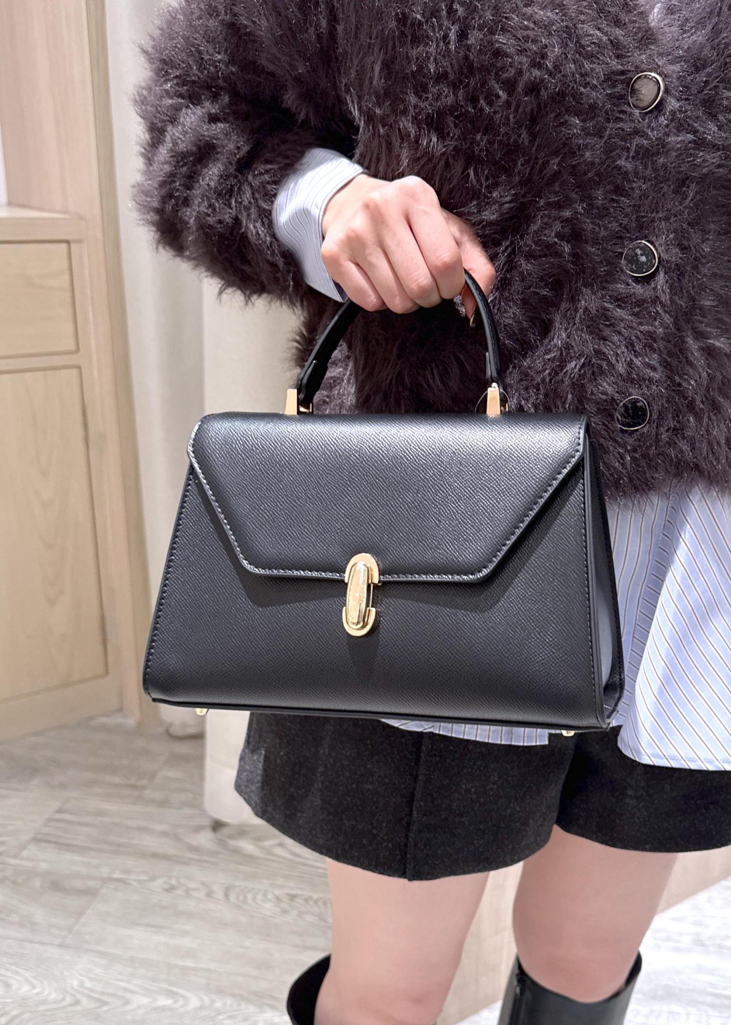 VIS楕円金具ワンハンドルバッグ/2WAYブラック / F¥7,909レビュー500mlペットボトルや長財布も収納可能です。傷が目立たない素材なのも嬉しいポイント◎程よいツヤ感の素材とフロントの金具が上品な印象を与えてくれます✨