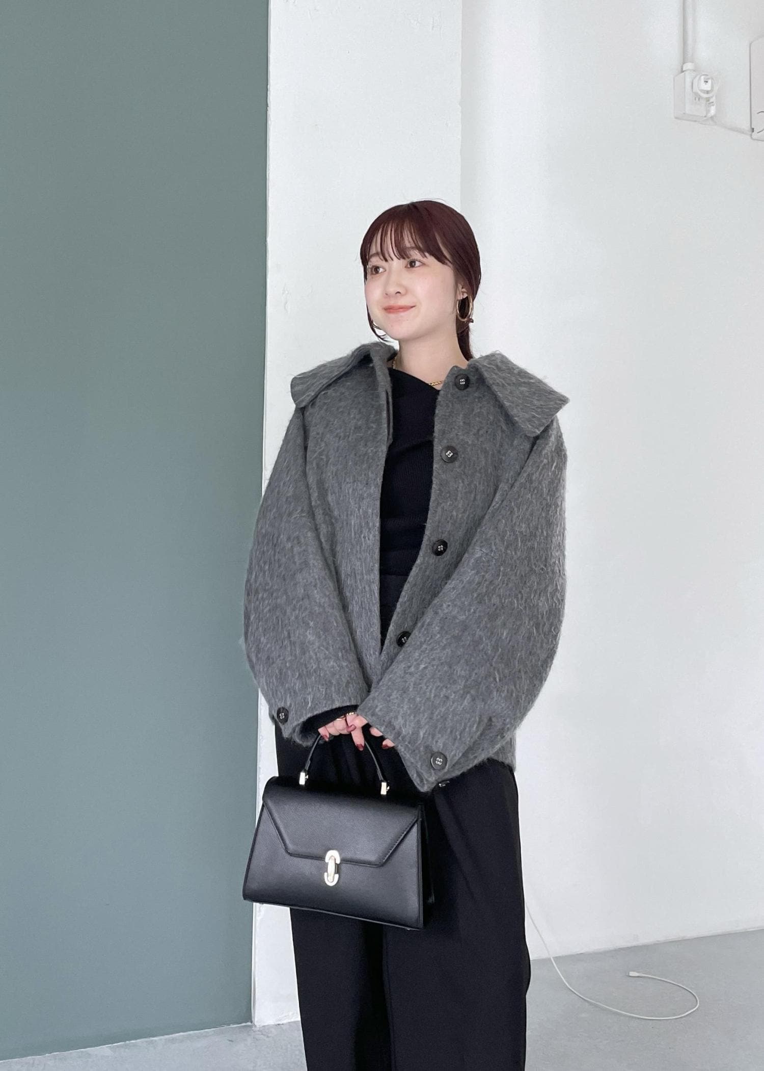 予約VIS【アウター総選挙1位】ビッグカラーモモンガシャギーショートコートグレー / M¥10,989レビュー大人可愛いビッグカラーショートコート♡身長159cm/Mサイズ着用で、ヒップがしっかり隠れる着丈。トレンド感あるゆったりシルエットで着用できました◎ウール混で暖かさがありながらさらっと羽織れる軽さもあります!