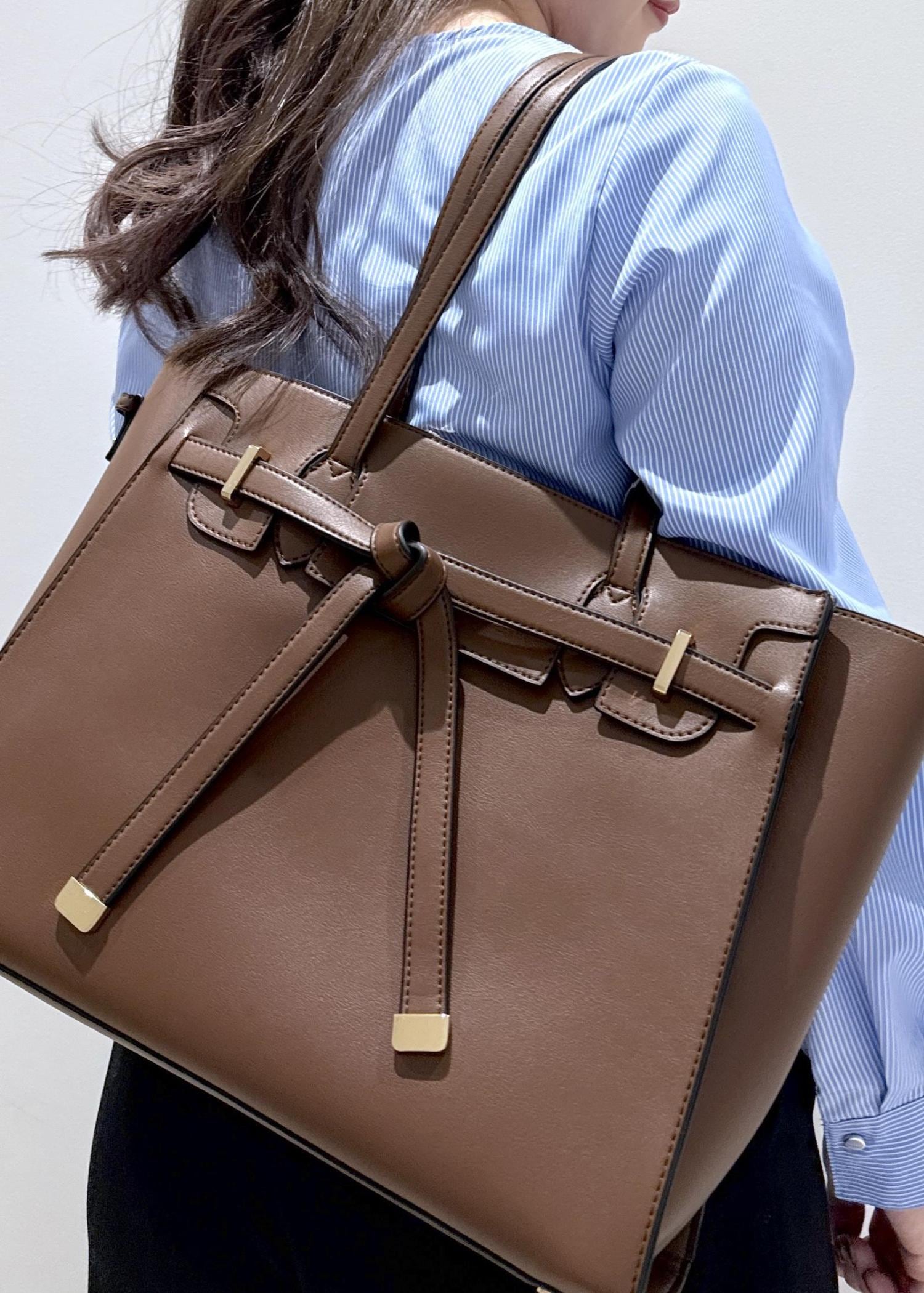 VIS【新色追加】【A4収納】フラップタイトートバッグダークブラウン / F¥7,909レビューリボン付きのトートバッグ⭐︎見た目が可愛いのはもちろん、ファスナー付きのバッグで内側にポケットが付いており、物もたくさん入ります!大きさ的にお仕事用で使えるタイプなので、A4サイズのノートやファイル、13インチのノートパソコンやiPadが入ります。
