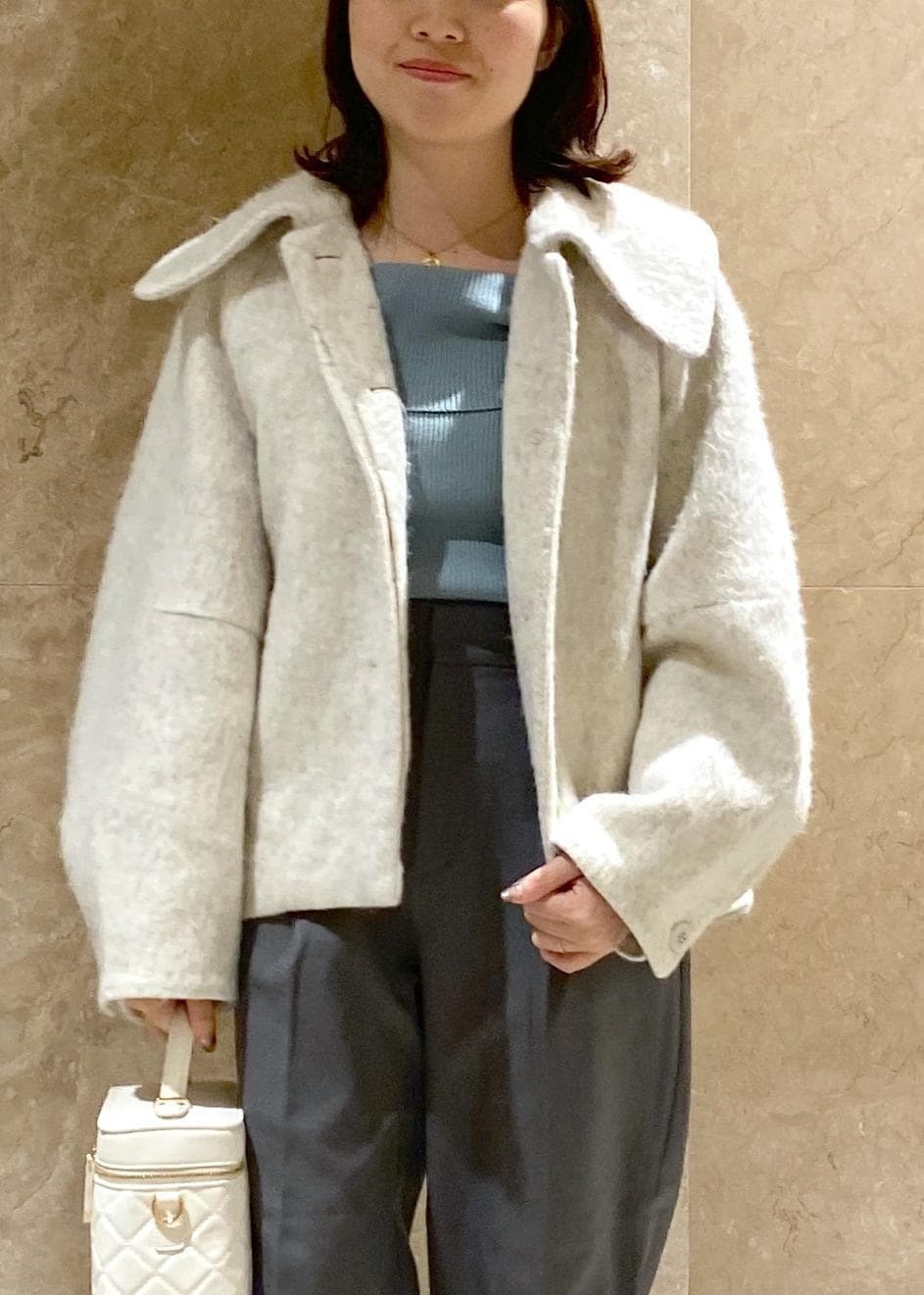 VIS【アウター総選挙1位】ビッグカラーモモンガシャギーショートコートオフホワイト / S¥10,989レビュー150cmでSサイズ着用し、お尻が隠れるぐらいの丈感でした!