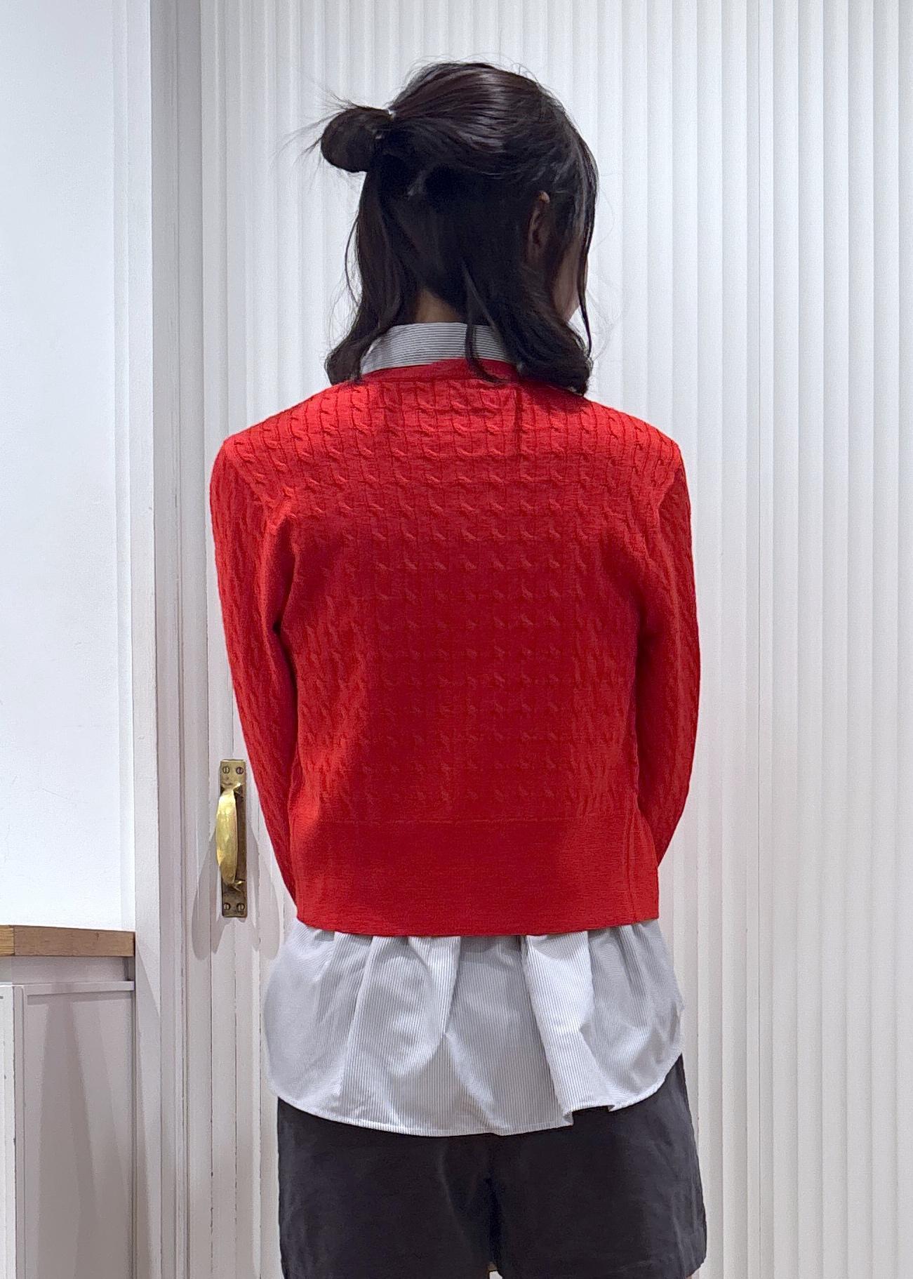 VIS【POLO BCS】VIS別注ミニケーブルノーカラーニットカーディガンレッド / F¥6,930レビュー身長164㎝、フリーサイズ着用です。