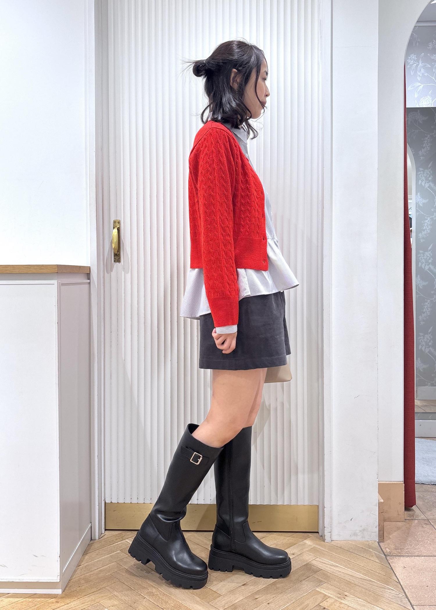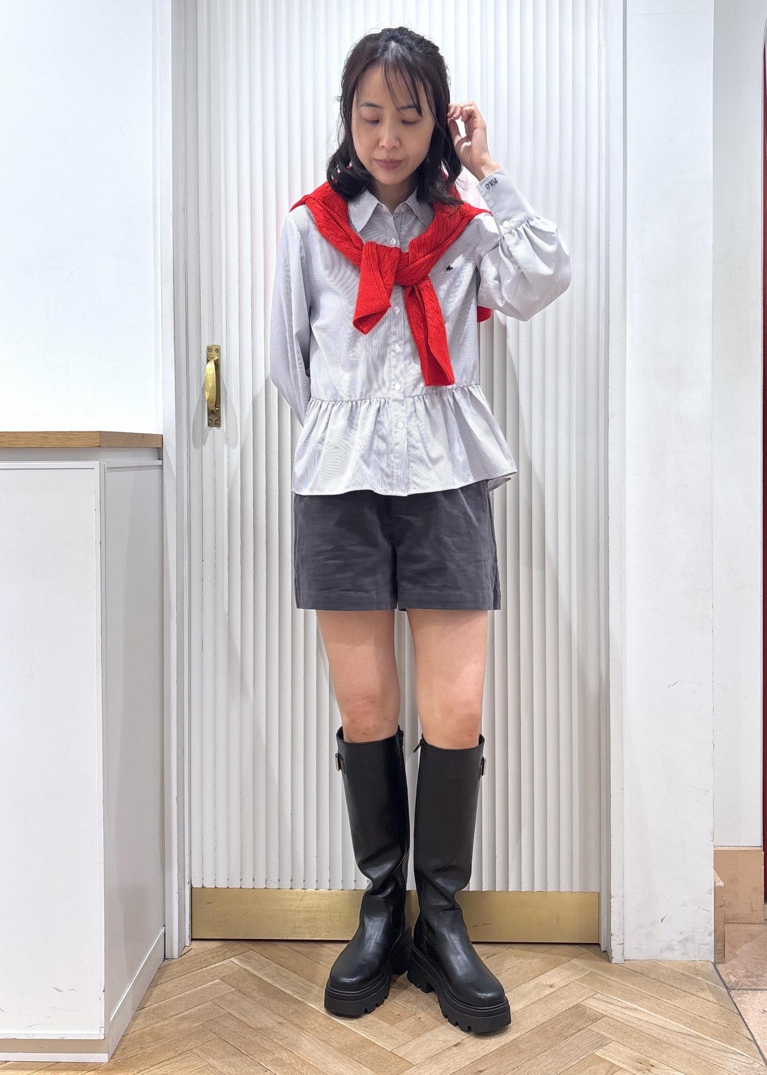 ロングブーツが入荷したのでショートパンツ合わせにしてみました。秋冬はボトムも色々楽しみたいですね。