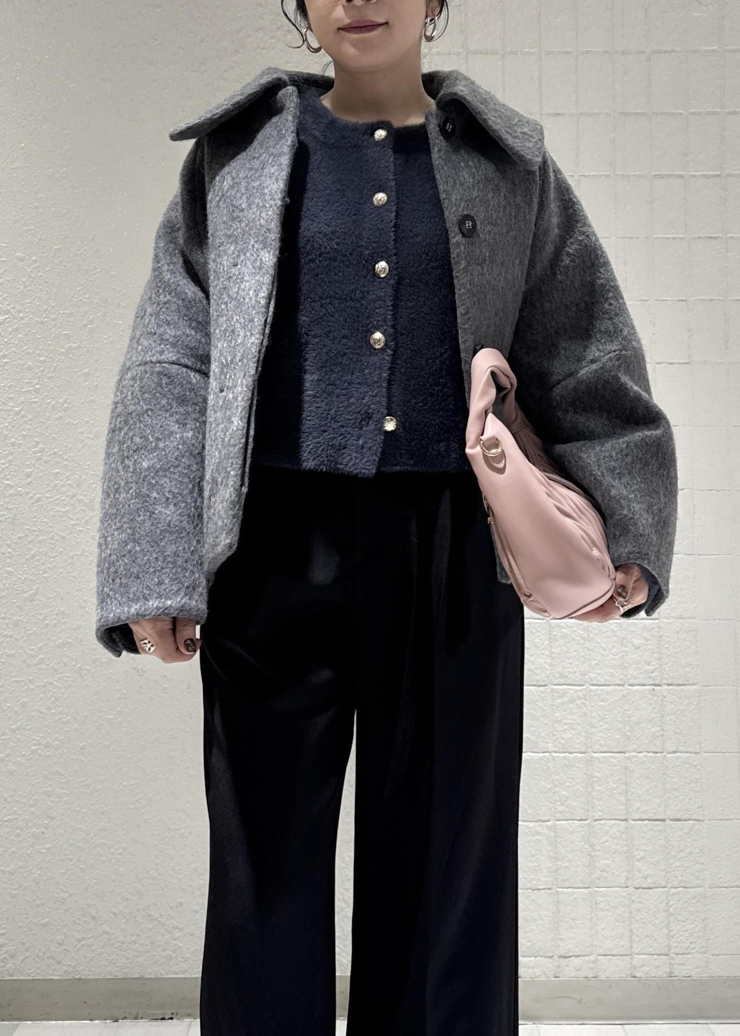 既に店頭でも人気ですが、シンプルなコーデに羽織ってもとても可愛らしく女性らしさが出るコクーンシルエット◎ -