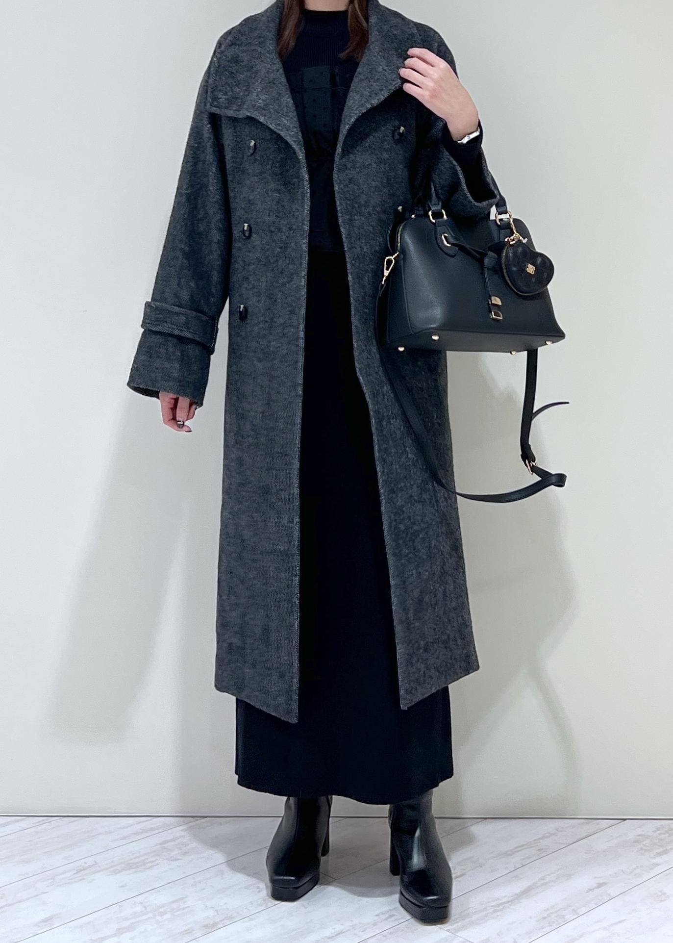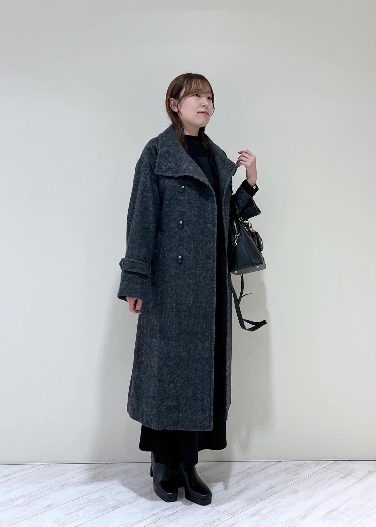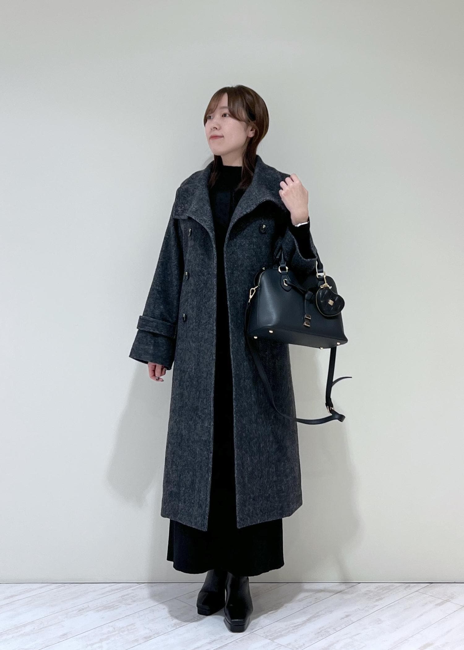 VIS尾州シャギースタンドカラーロングコート/静電気防止・WEB限定PS・TMサイズチャコール / M¥21,890レビューロング丈ですが想像以上に軽く、あたたかく羽織って頂けます◎ゆったりめのシルエットなので厚手のニットも着込みやすいです!Mサイズ着用でふくらはぎほどの着丈でした。