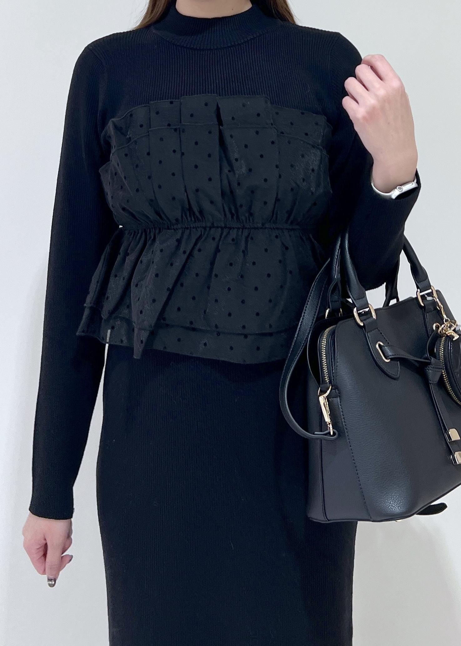 NEW! 予約VISビスチェドッキングニットプルオーバー/セットアップ対応ブラック / F¥5,489レビューチクチク感のない柔らかいニットで着心地◎名前の通りビスチェがドッキングされているので1枚で華やかな印象になります!着丈は腰にかかるくらいで、裾をボトムにインするのがおすすめです♡