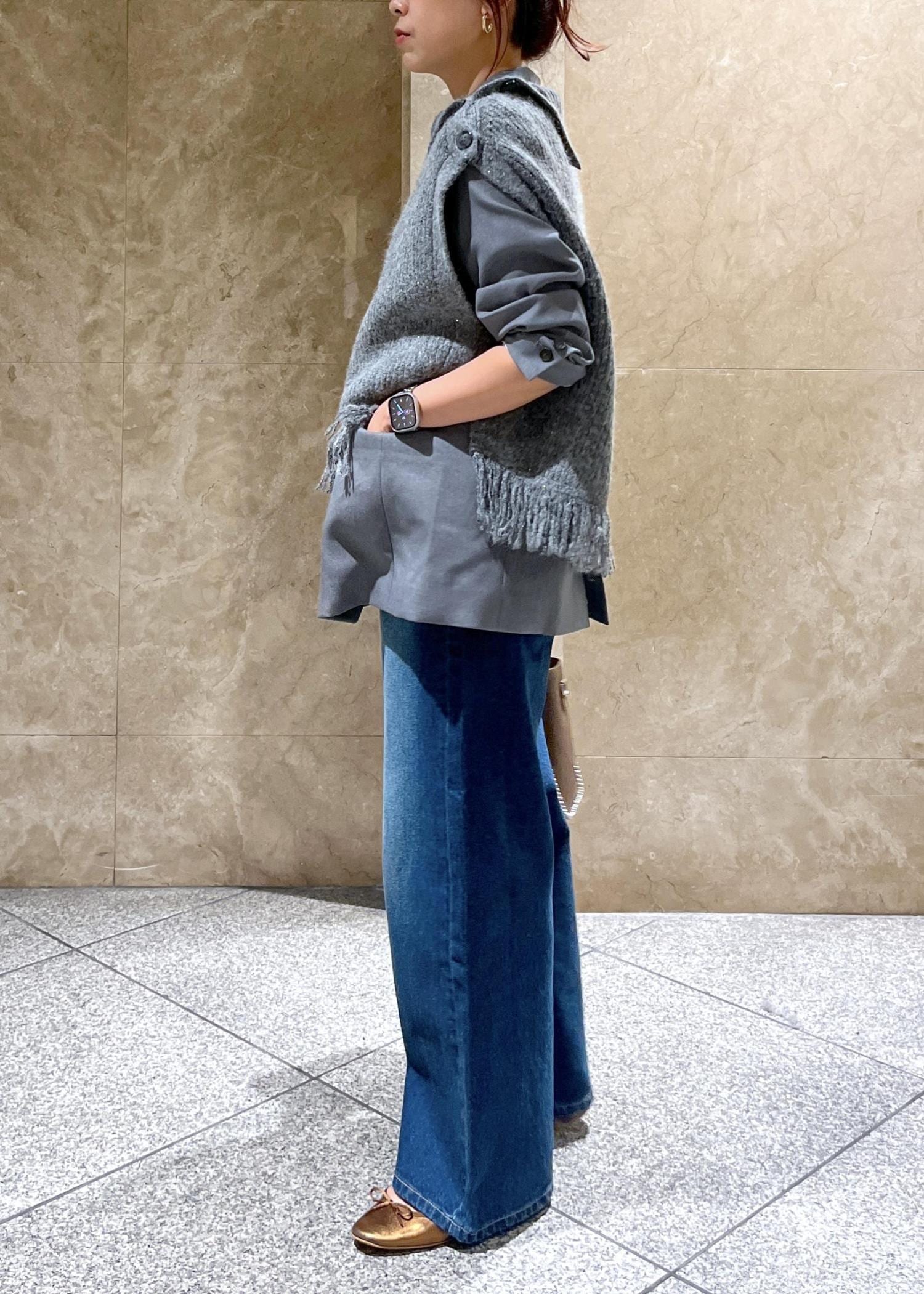 全体的にゆったりと余裕のあるサイズ感で、インナーは少し厚みのあるニットでも着られそう!