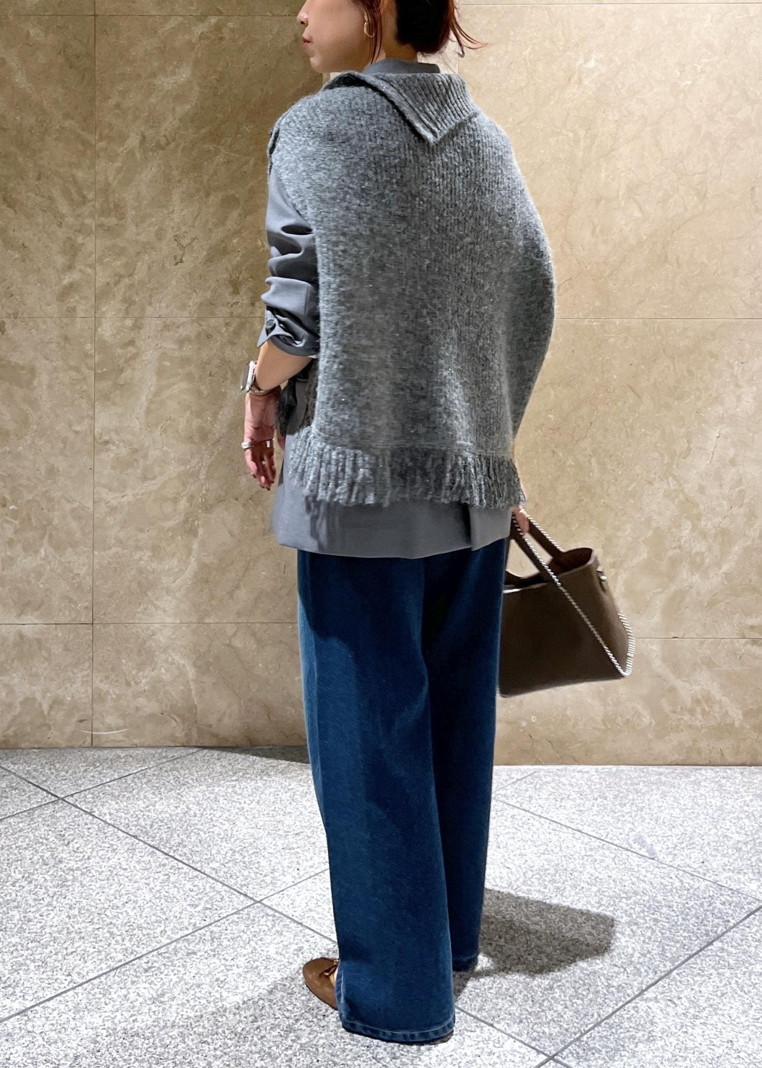身幅や脇の開きなどゆとりのあるサイズ感なので、ピタッとしたインナーはもちろん、ゆったりめのシャツなどの上からでもレイヤードがしやすい◎