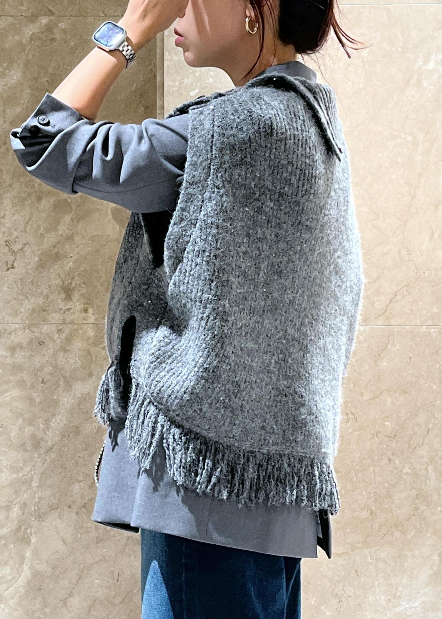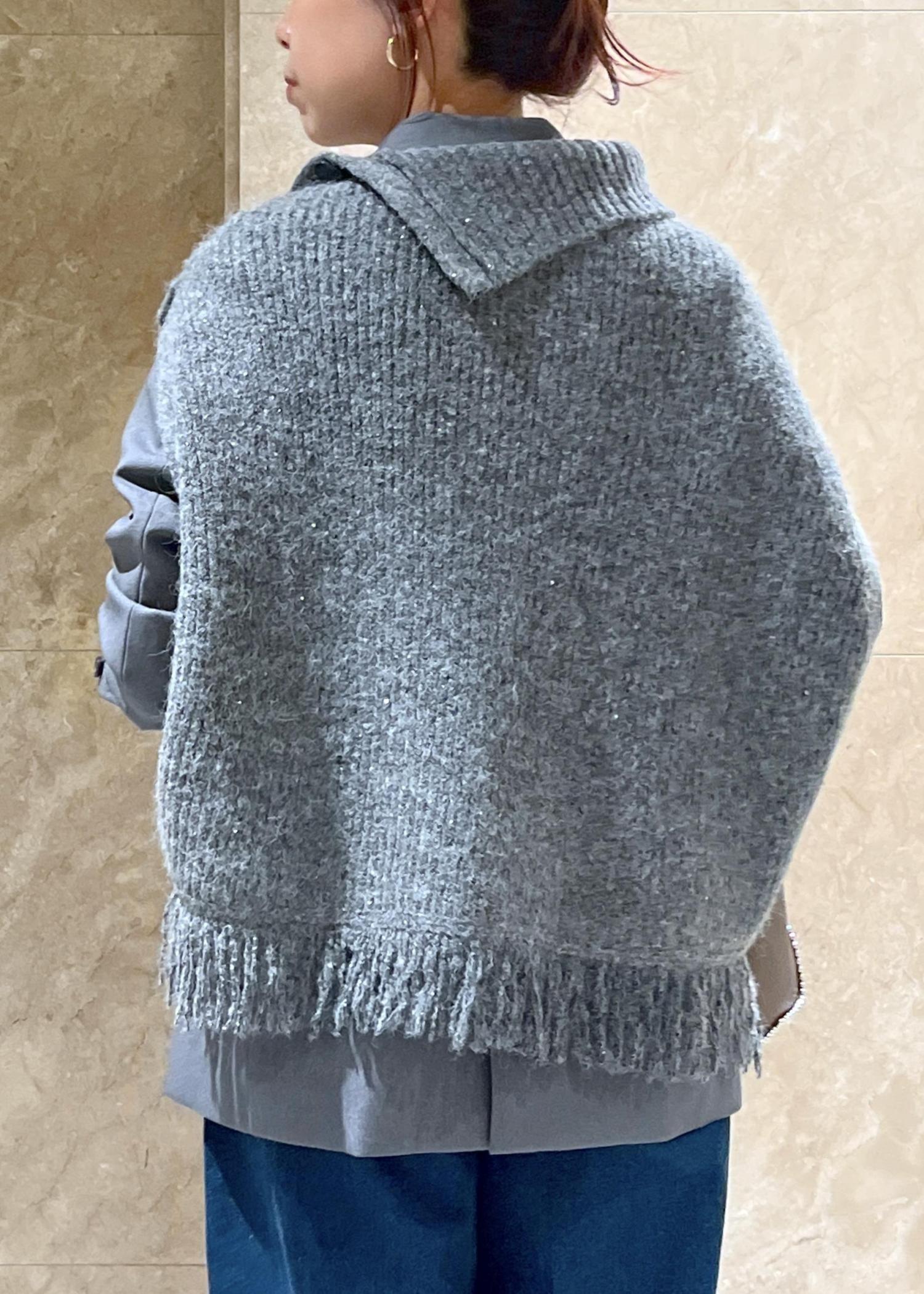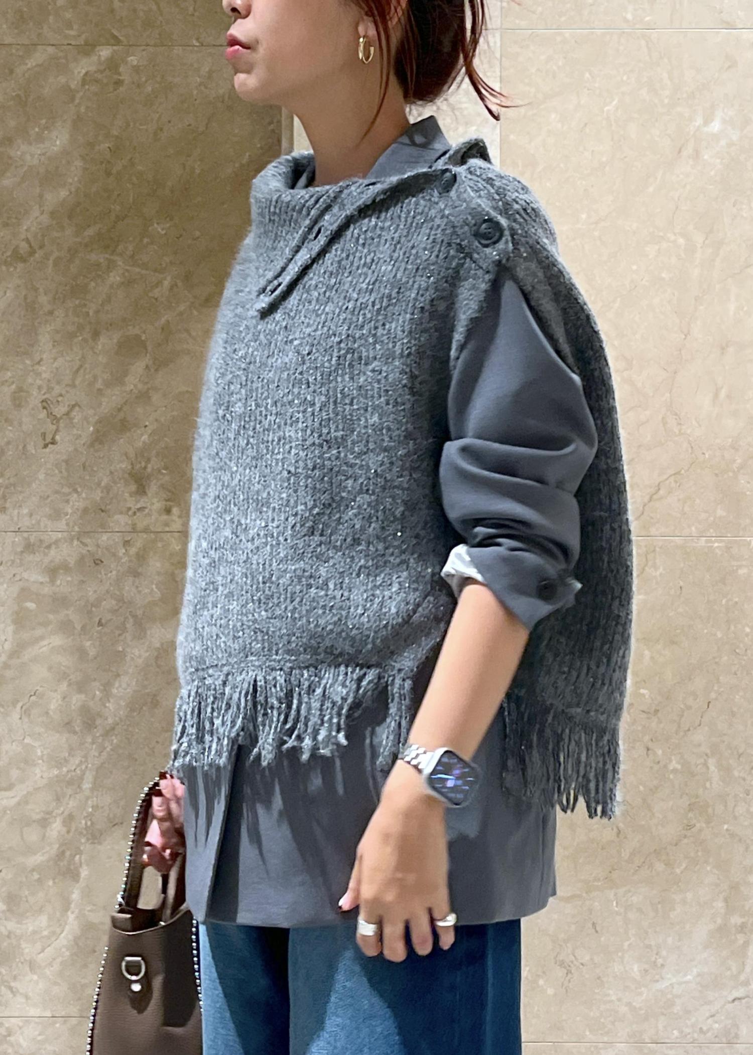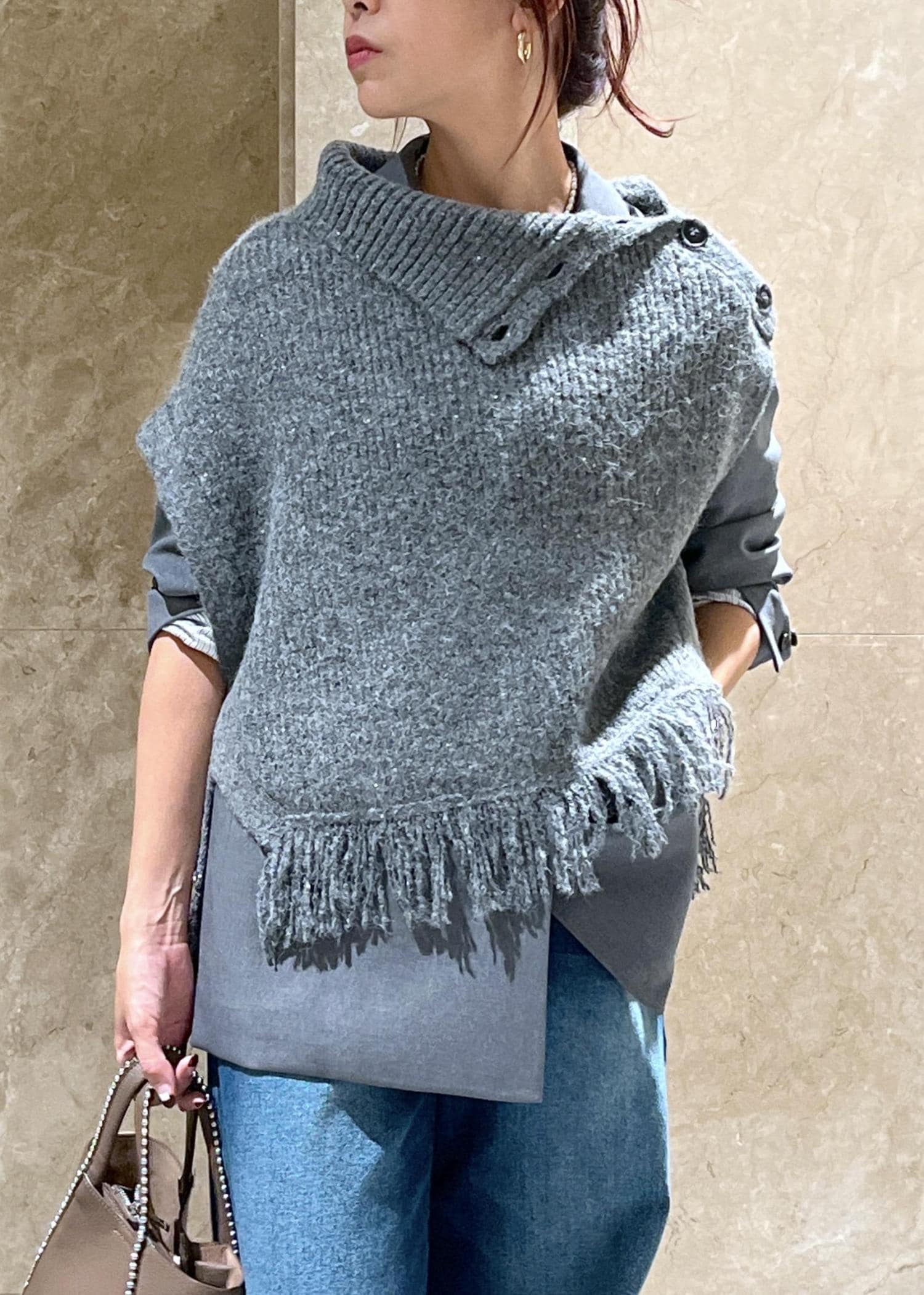 VISボタンデザインポンチョベストチャコール / F¥4,939レビュー身長158cm、着丈は前後差があり、前は腰あたり、うしろはお尻が隠れるほど。
