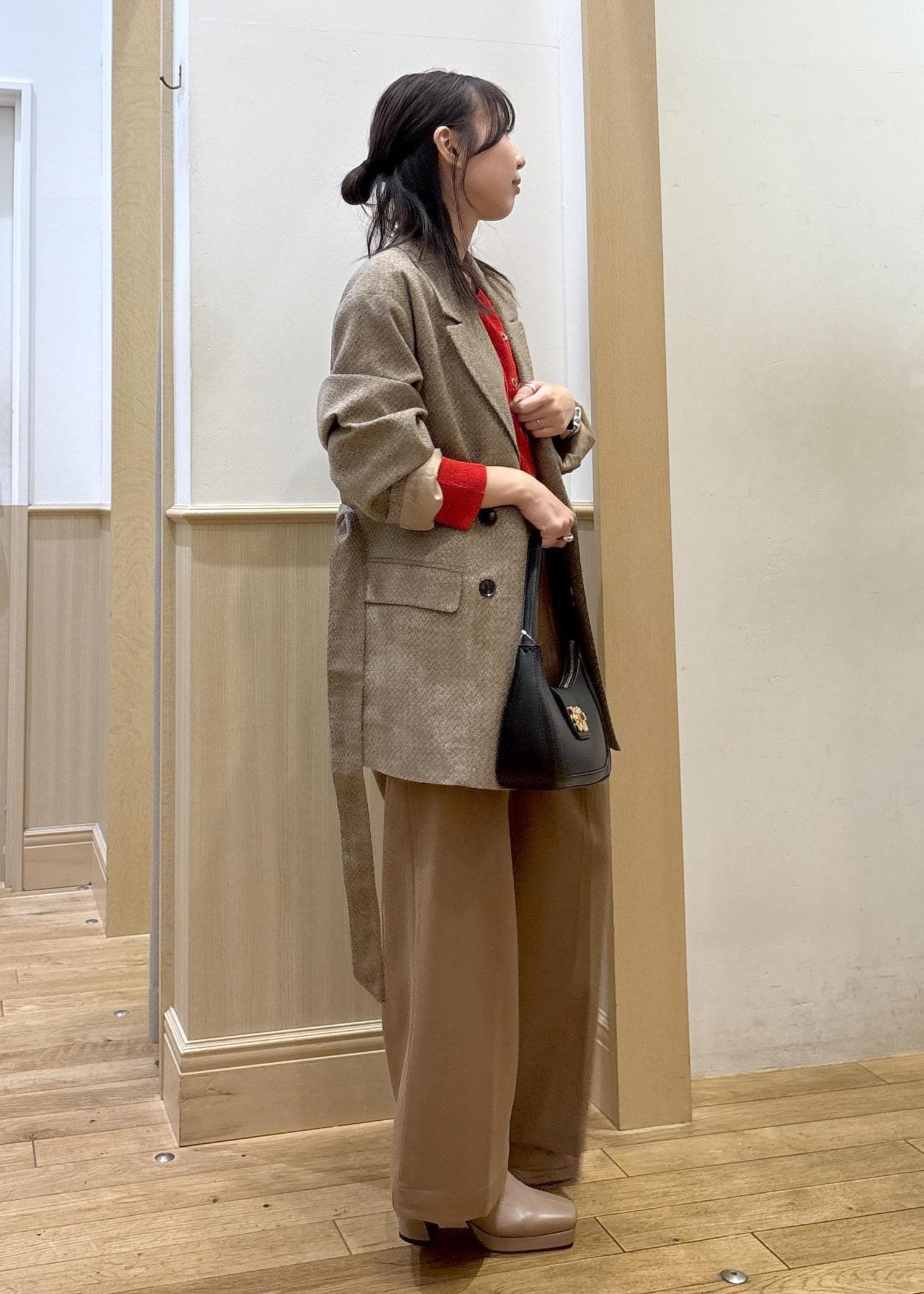 シルエットは大きめシルエットですが、縦長に見えてくれる直線的なシルエットですら