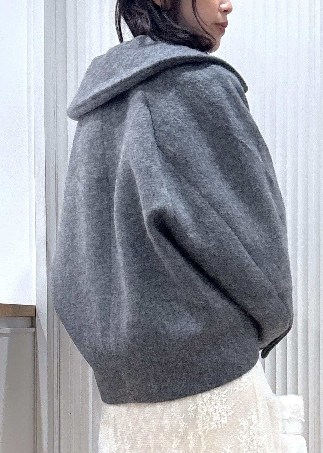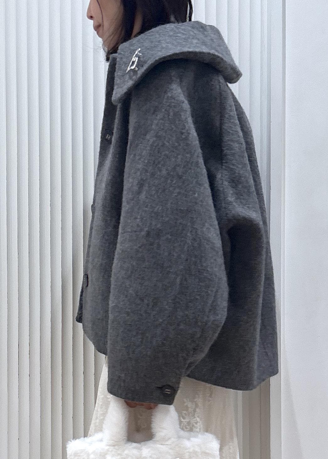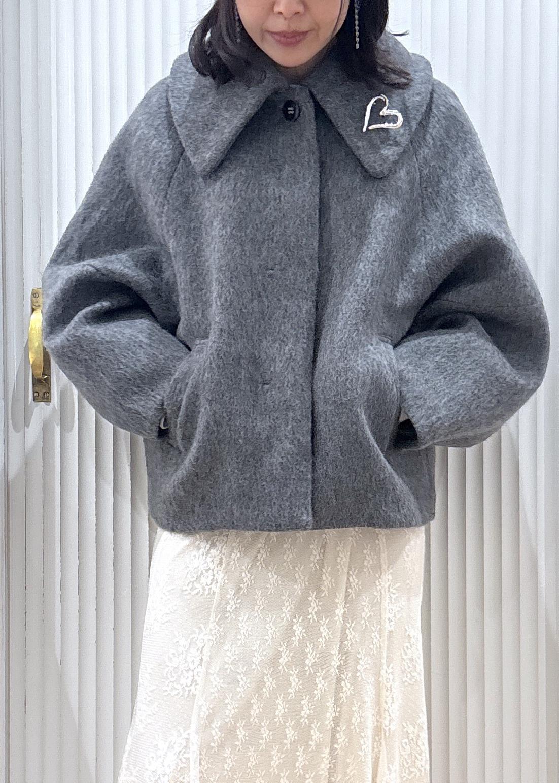 予約VIS【アウター総選挙1位】ビッグカラーモモンガシャギーショートコートグレー / M¥10,989レビュー身長164cm、Mサイズ着用です。