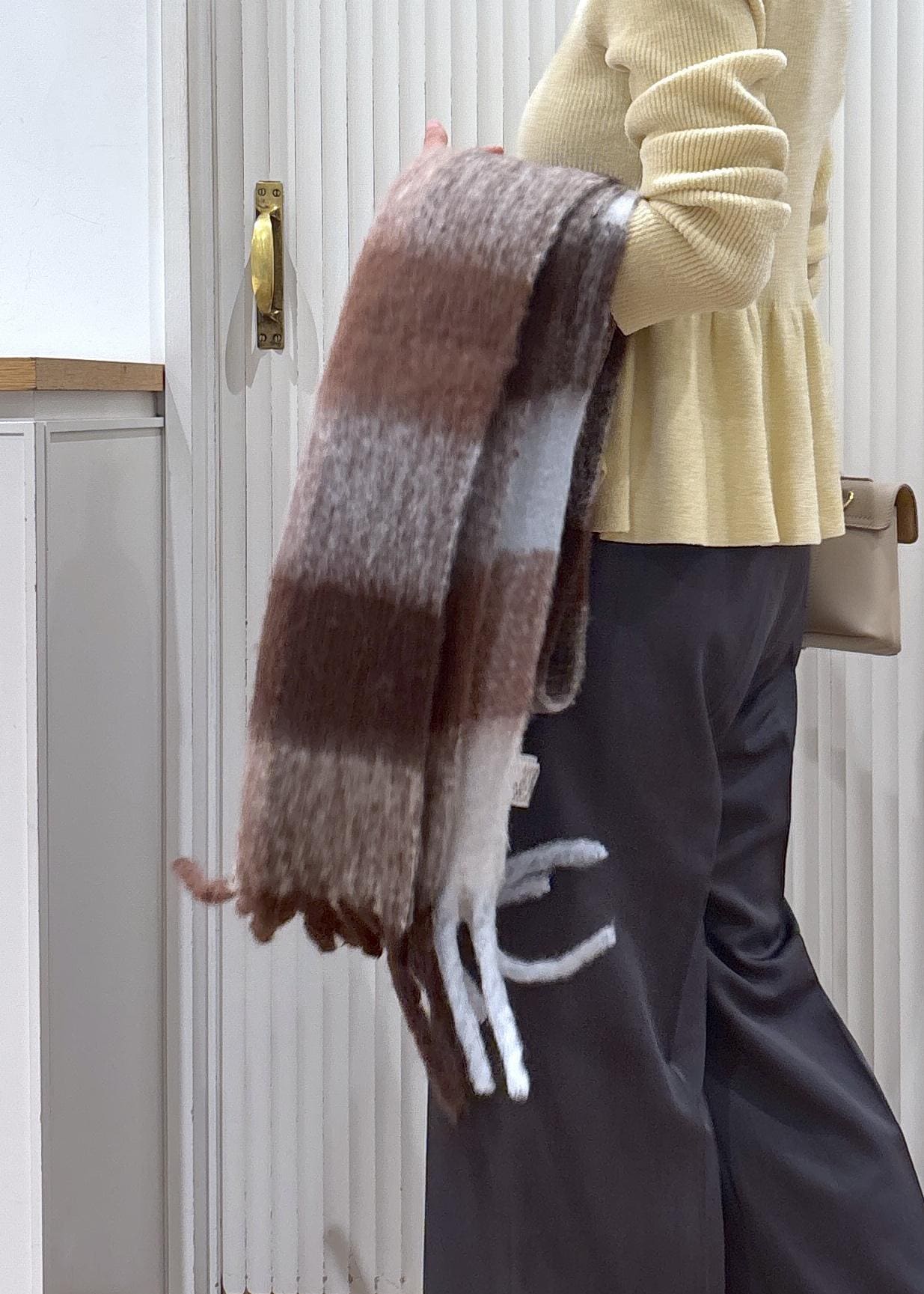 VISふわふわフリンジチェックマフラー/静電気防止ブルー系 / F¥3,289レビュー大判で子供っぽく無いチェックなので、どんなコートにも合わせやすいです。