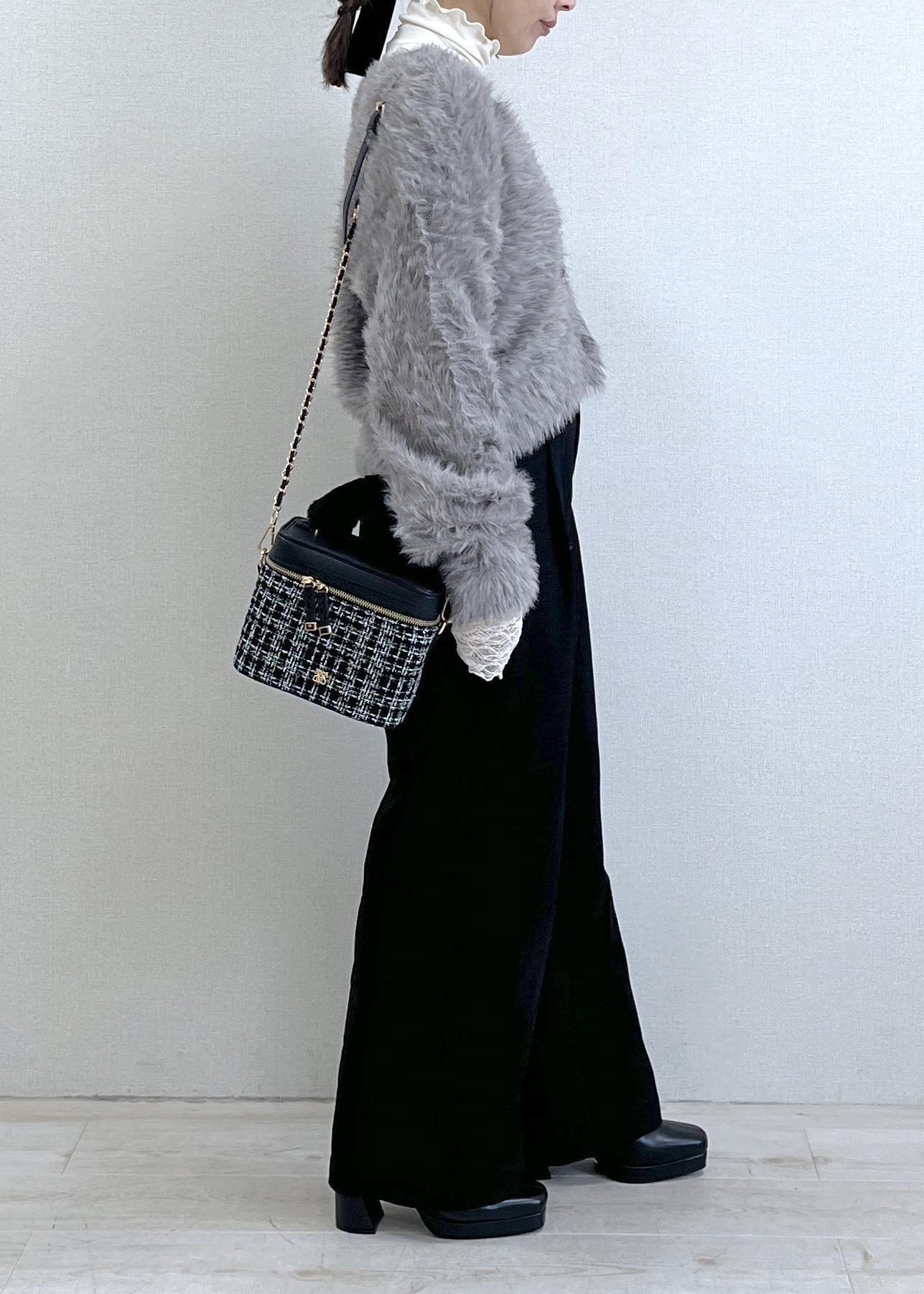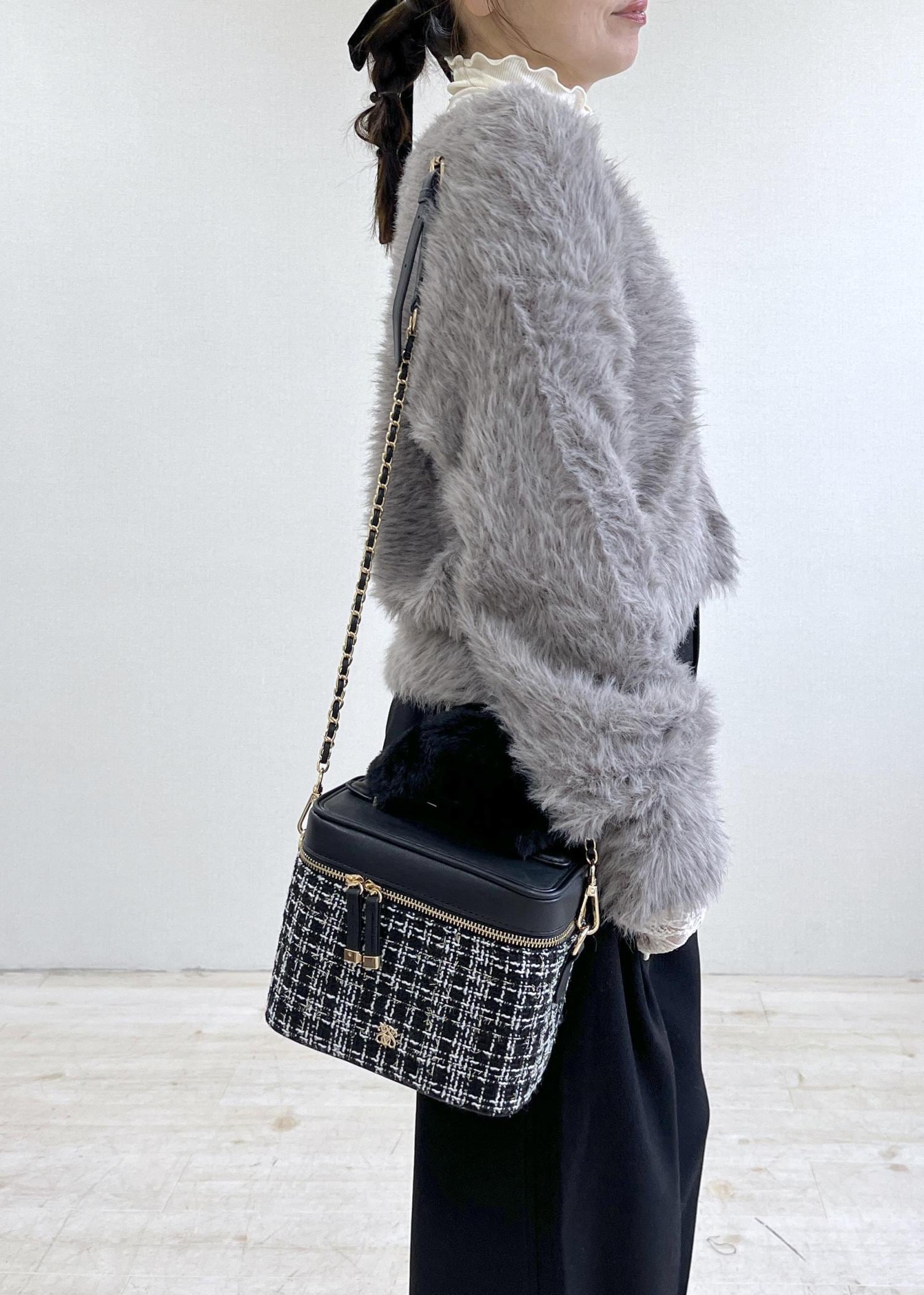 VISファーハンドルキルティング&ツイードバニティバッグ/2WAYその他 / F¥7,909レビューハンドル部分のファーがファスナーで取り外しができるので、コーディネートによって変化を楽しめるバッグです。コンパクトサイズなので、持つだけで女子力UP。ミニ財布やポーチ、携帯など必要なアイテムは入れられるサイズ感。手持ちにもショルダーにもなります。