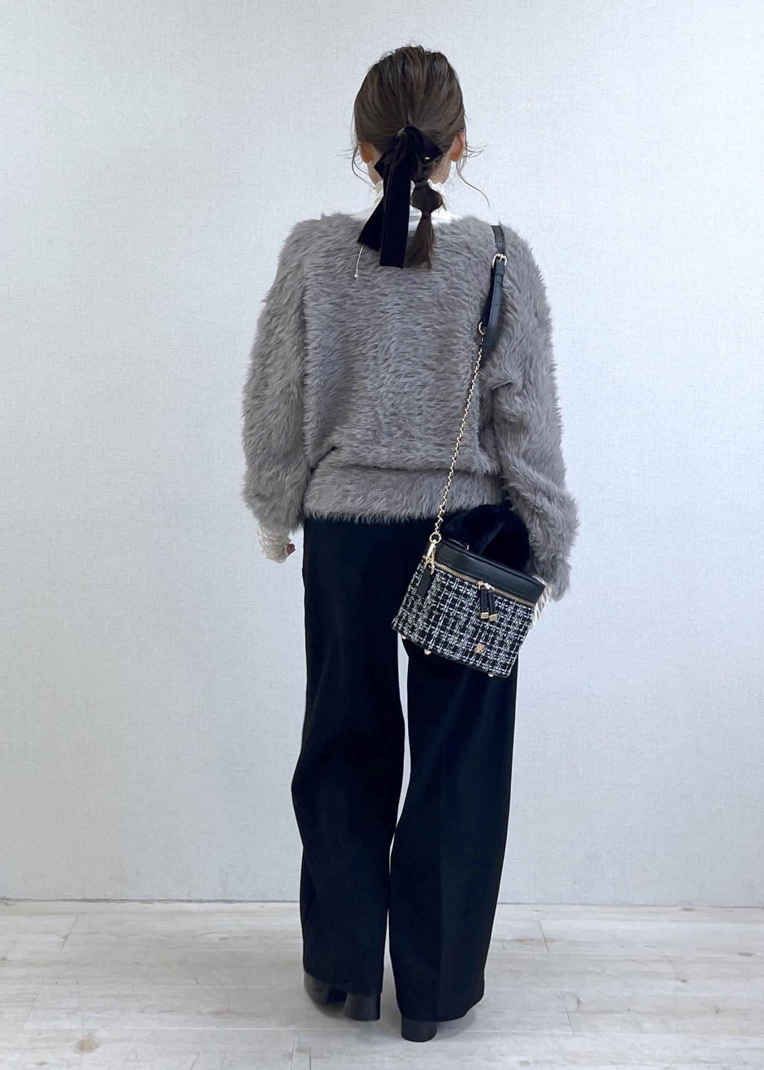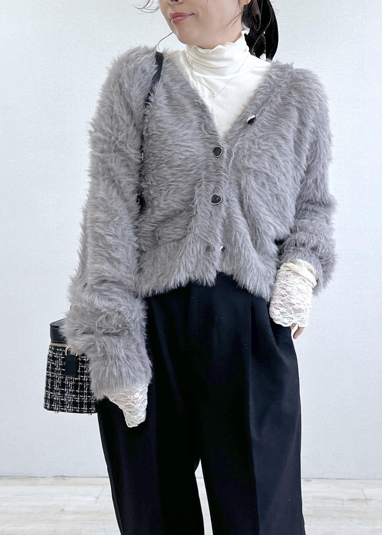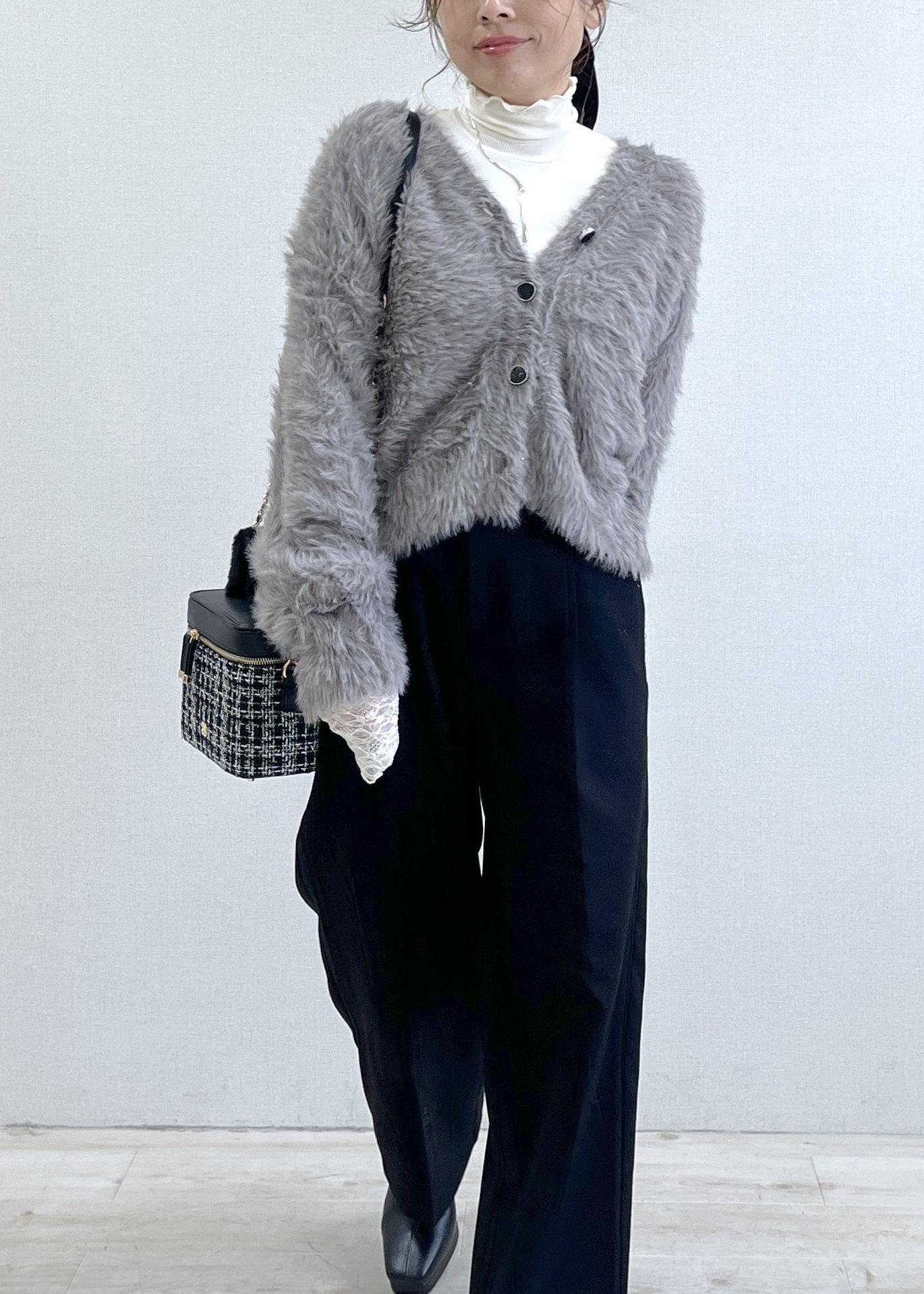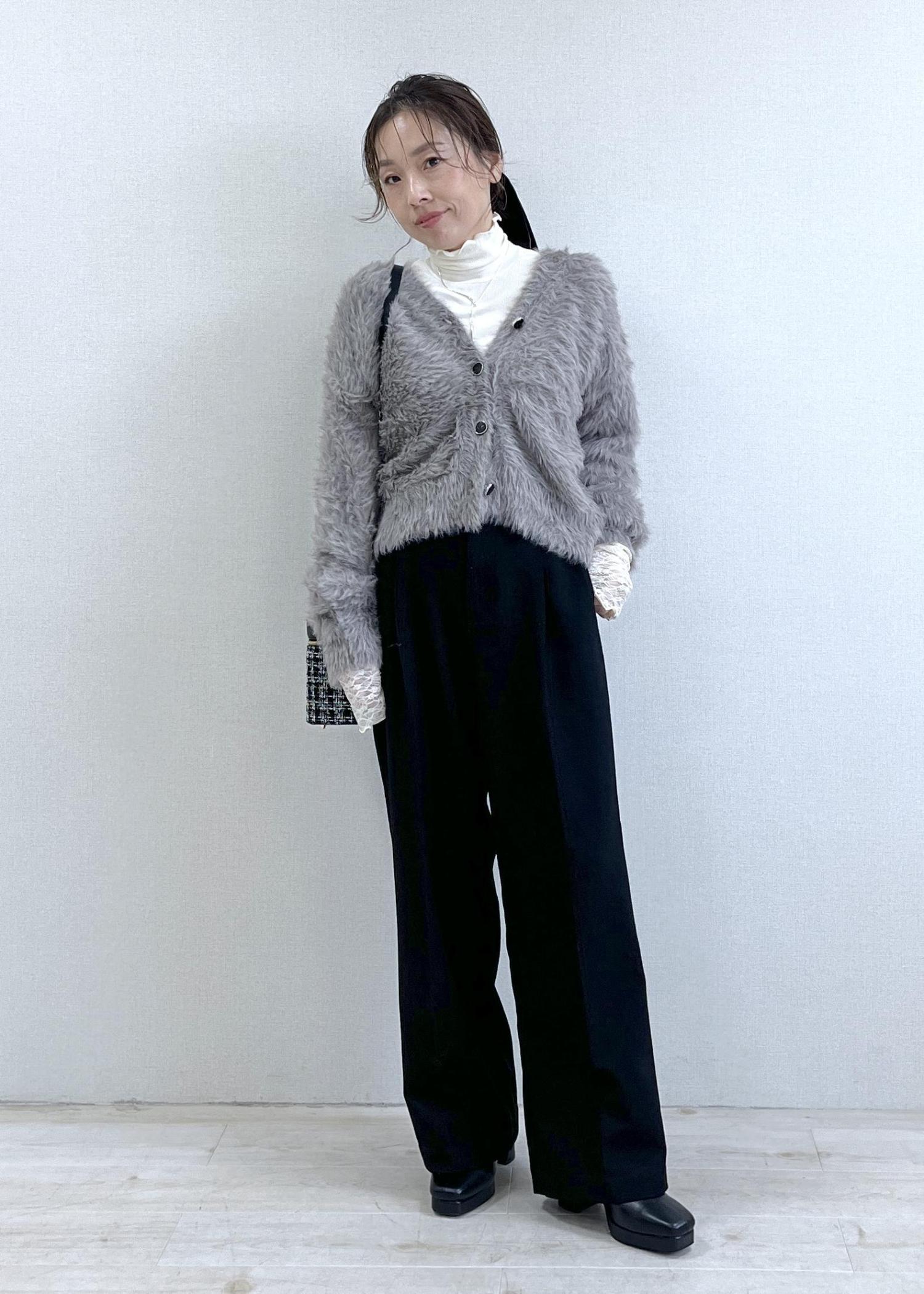 思わず触れたくなるふわふわシャギーカーデを主役に。